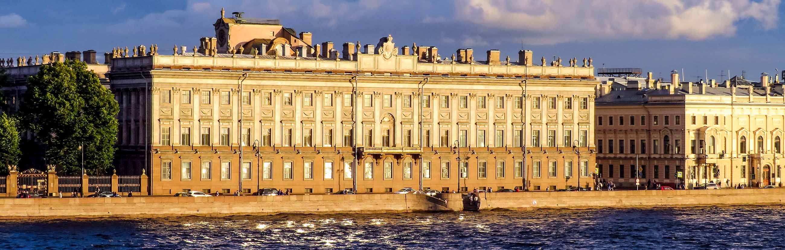 С Невы открывается великолепный вид на Дворцовую набережную и северный фасад здания.