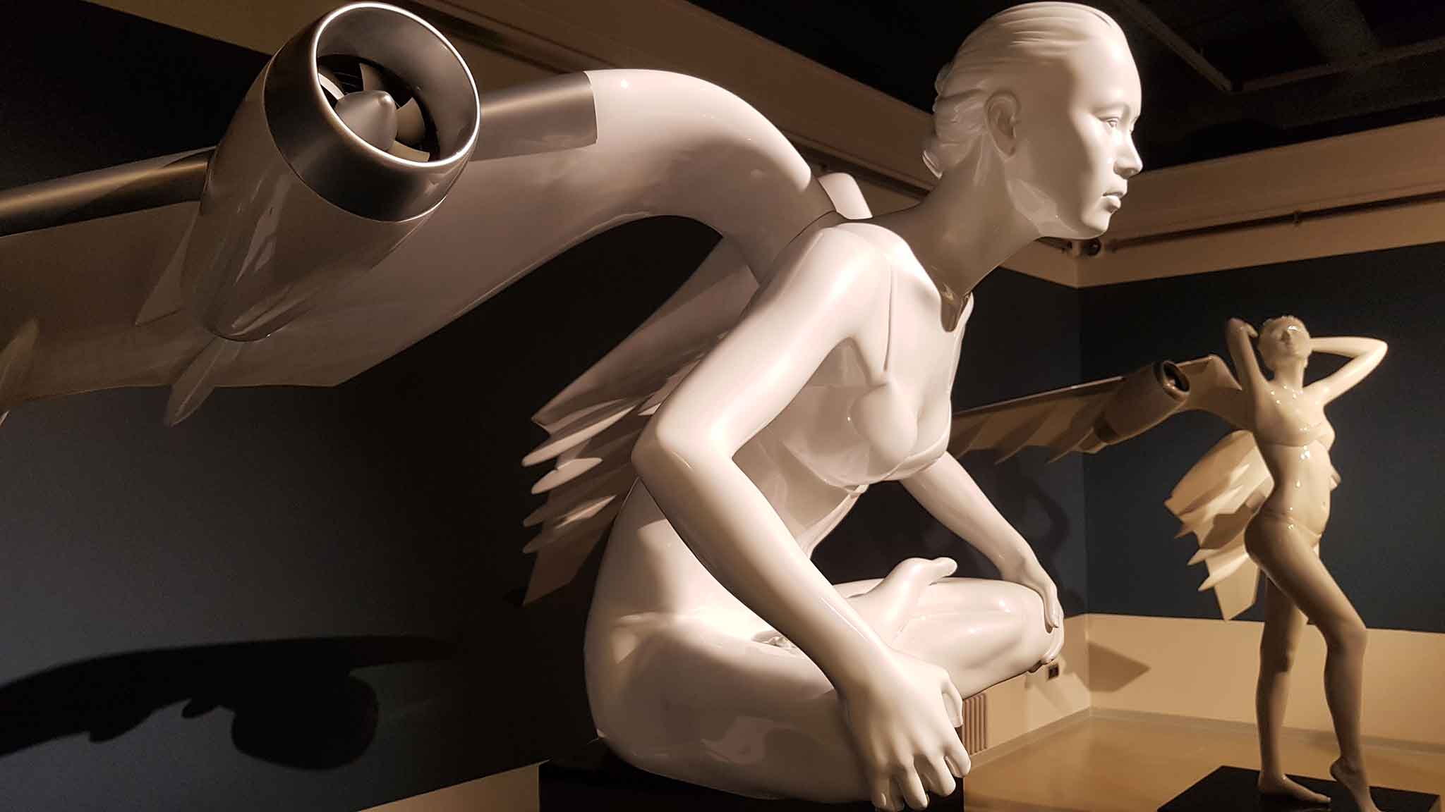 Две эти составляющие символически воплощены в скульптурах «Эра» и «Арта» — мифологические крылатые существа установлены у входа в музей. Одну из фигур скульптор Дмитрий Жуков создал так, что в ней угадываются черты крылатой богини победы Ники Самофракийской.