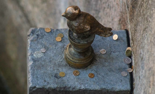 Вне зависимости от времени года сюда стекаются и горожане, туристы, и молодожены, стремящиеся добросить до птички монетку. А вдруг повезет?