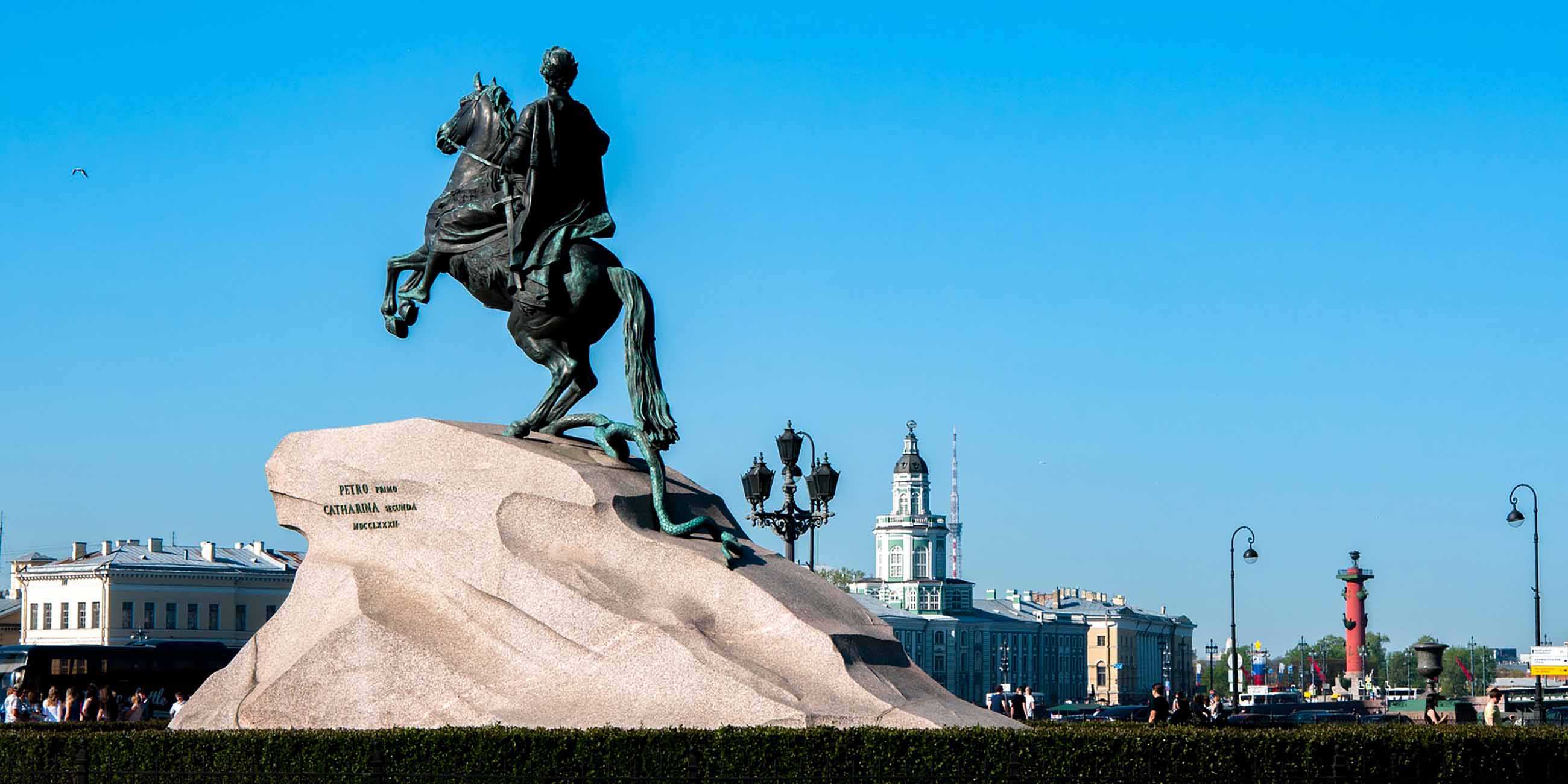 Легендарная достопримечательность Санкт-Петербурга, десятиметровый памятник, выполненный из бронзы и гранита, посвящен первому российскому императору Петру I. Монумент на Сенатской площади — первый конный памятник царю-реформатору. Название «Медный всадник» закрепилось за монументом после выхода в свет одноименной поэмы Александра Пушкина, написанной в 1833 году. Визит к памятнику — обязательный пункт программы любого гостя Санкт-Петербурга, непременная точка каждой экскурсии по городу. Лишь увидев монумент своими глазами, можно осознать все величие «Медного всадника», перед взором которого раскинулась Нева, а за спиной — Исаакиевский собор.