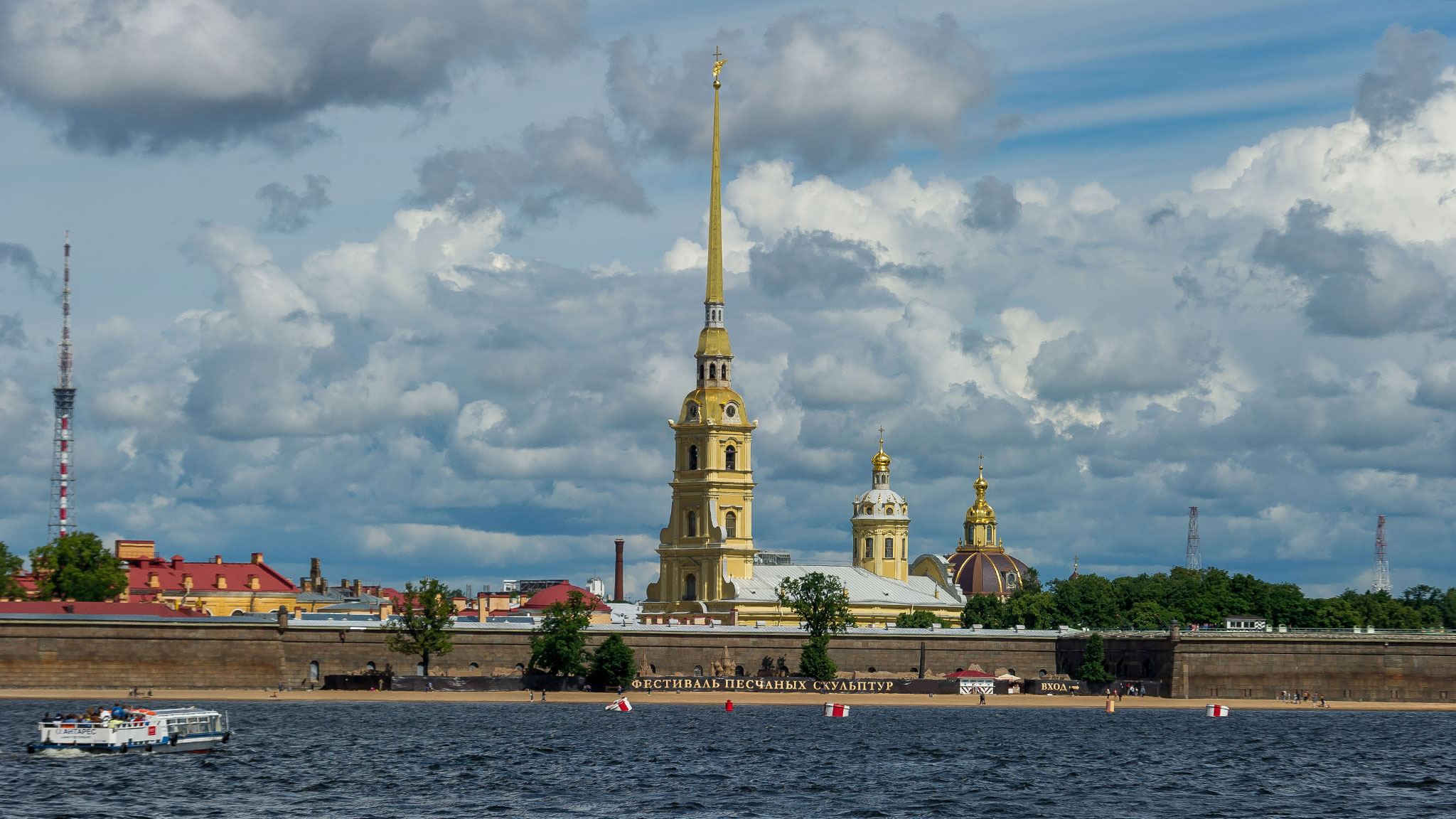 Кроме того, летом тут открыт городской пляж, где можно загорать. Отдыхать на песочке, наблюдая панорамный вид на Зимний дворец, — потрясающе.