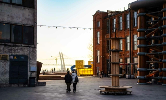 Когда впервые попадете в «Севкабель Порт» в Санкт-Петербурге, глаза точно будут разбегаться: кафешки, магазины, огромные граффити и муралы на стенах, множество отдыхающих. В первую очередь направляйтесь к набережной. Обновленный променад, который раньше был недоступен горожанам, составляет около 200 метров в длину, а на его протяжении — уютные шезлонги, деревянные скамейки и даже газон для отдыха. И, конечно, та самая петербургская атмосфера — Финский залив, вид на футуристический мост Западного скоростного диаметра и Морской порт.