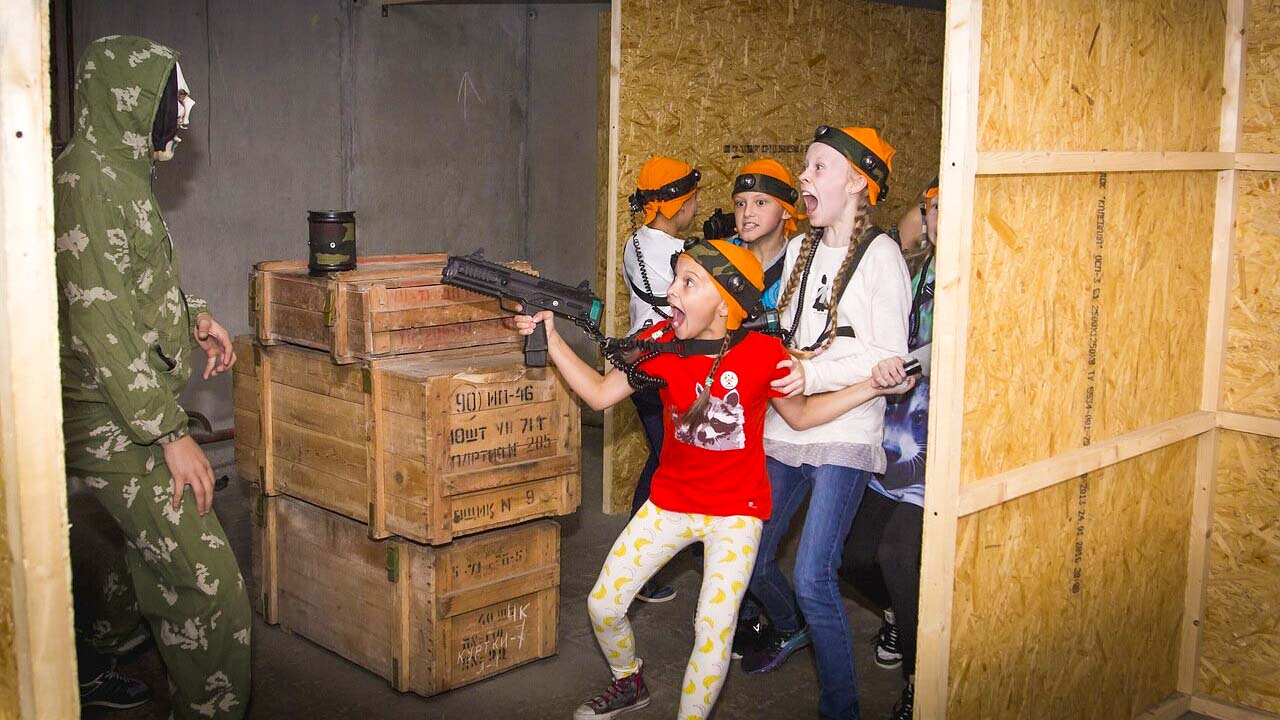 Вторая часть программы — это игра в лазертаг. Это нетравматичный аналог пейнтбола: вместо шариков с краской участники стреляют лазерными лучами по противникам в экипировке, улавливающей попадания. Это совершенно не больно и куда более зрелищно. Отметим, что лазертаг — не просто бег с оружием, это настоящий тимбилдинг и часть игрового сюжета, где игроков испытывают на выносливость и скорость реакции. На выбор можно поиграть в космический или военный лазертаг, где участники выступят в роли галактического рыцаря, солдата специального отряда или станут проводником в загадочную зону.