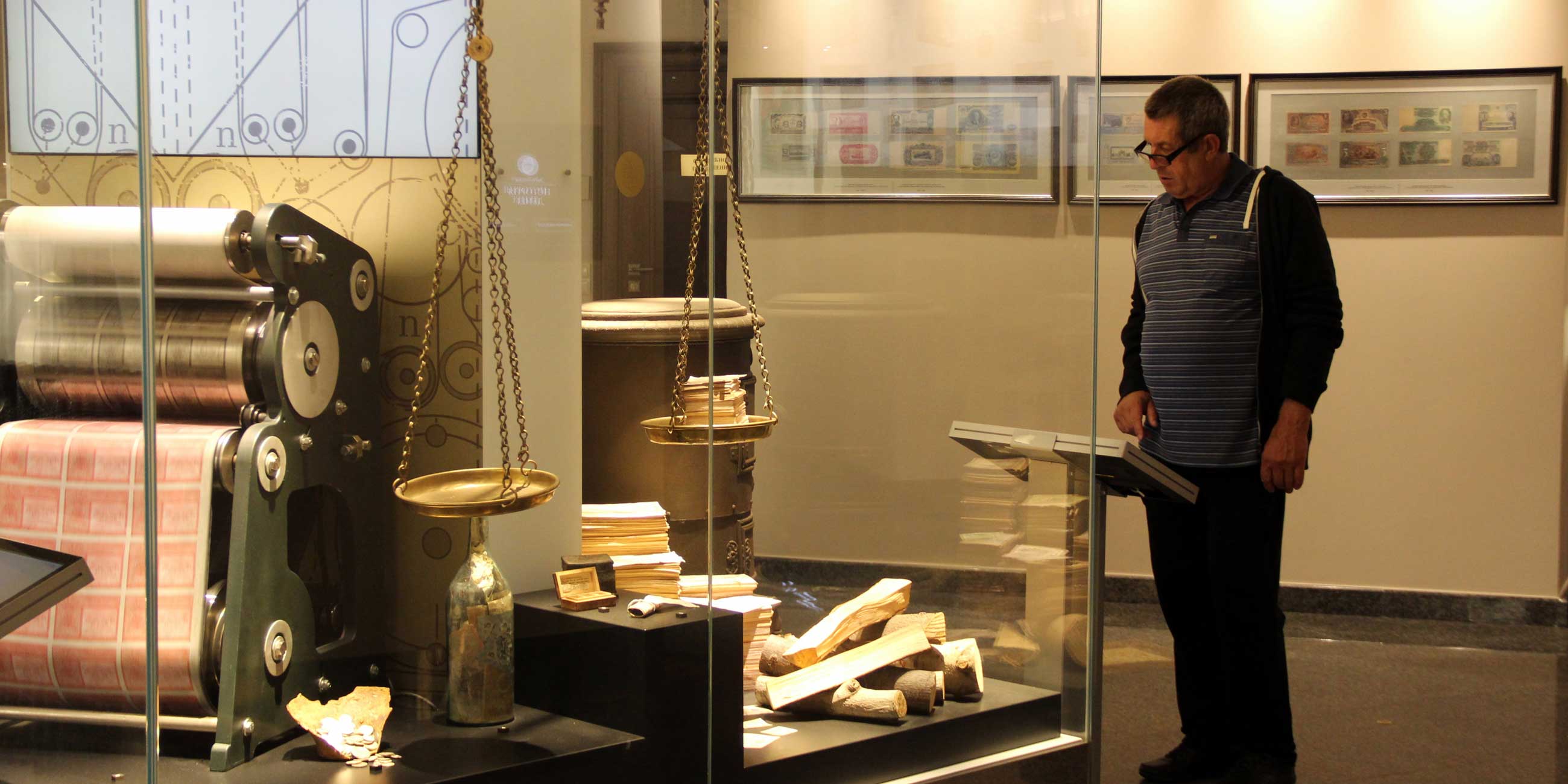 Посетителям предлагают посмотреть тематические видеоролики, посвященные истории денежной системы в России; историческим личностям и событиям, связанным с историей денег; технологиям производства денежных знаков.