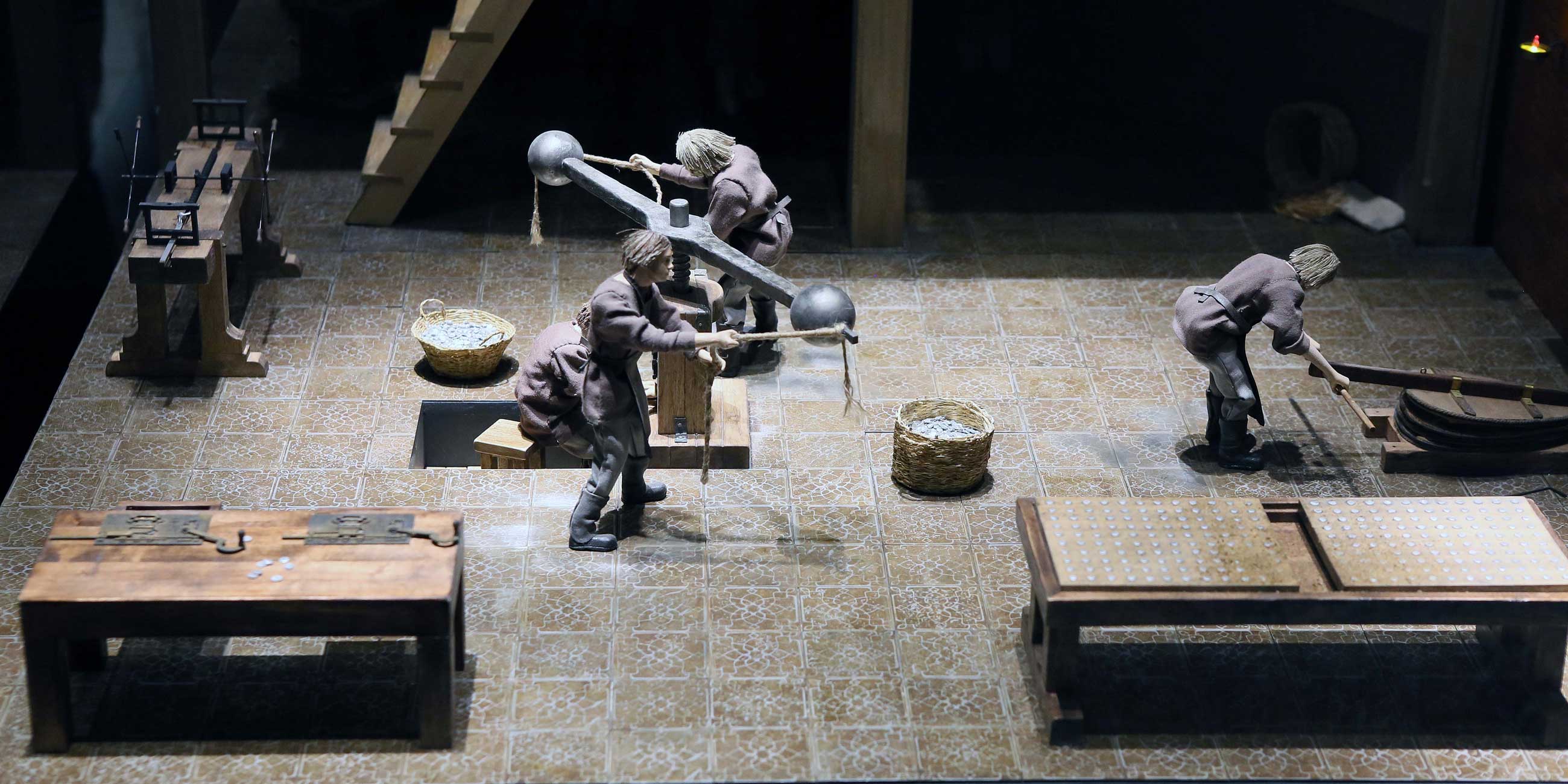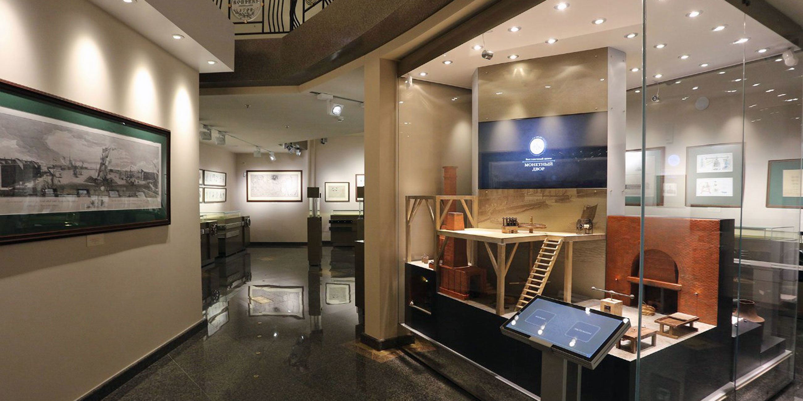 Динамические макеты монетной фабрики и бумажной мельницы 18 века. Видеоролики, рассказывающие о современном производстве монет и банкнот.