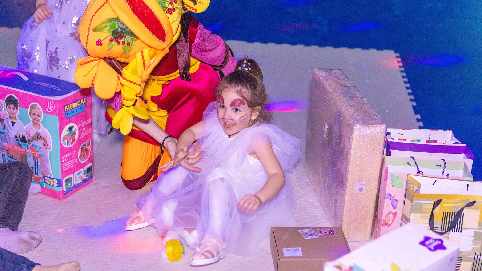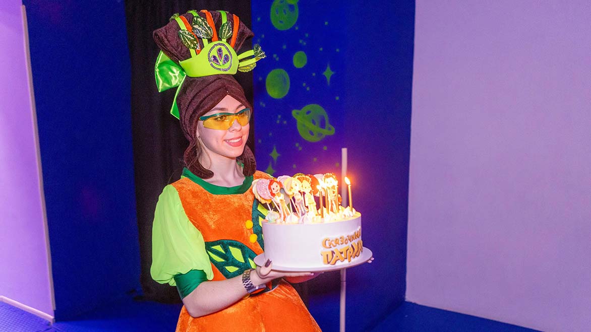 Под праздник отведено 1000 квадратных метров пространства и шесть залов для торжеств. Все локации оформлены по-разному, так что можно подобрать интерьер под настроение именинника. В арсенале центра более 300 аниматоров, три автобота, 35 ростовых кукол и даже «живой» динозавр. Гостям предлагают на выбор свыше 70 шоу. Для активных — надувные батуты. Для любителей волшебства — шоу мыльных пузырей, снег-шоу в любое время года, рисование светом. Есть и познавательные форматы.
