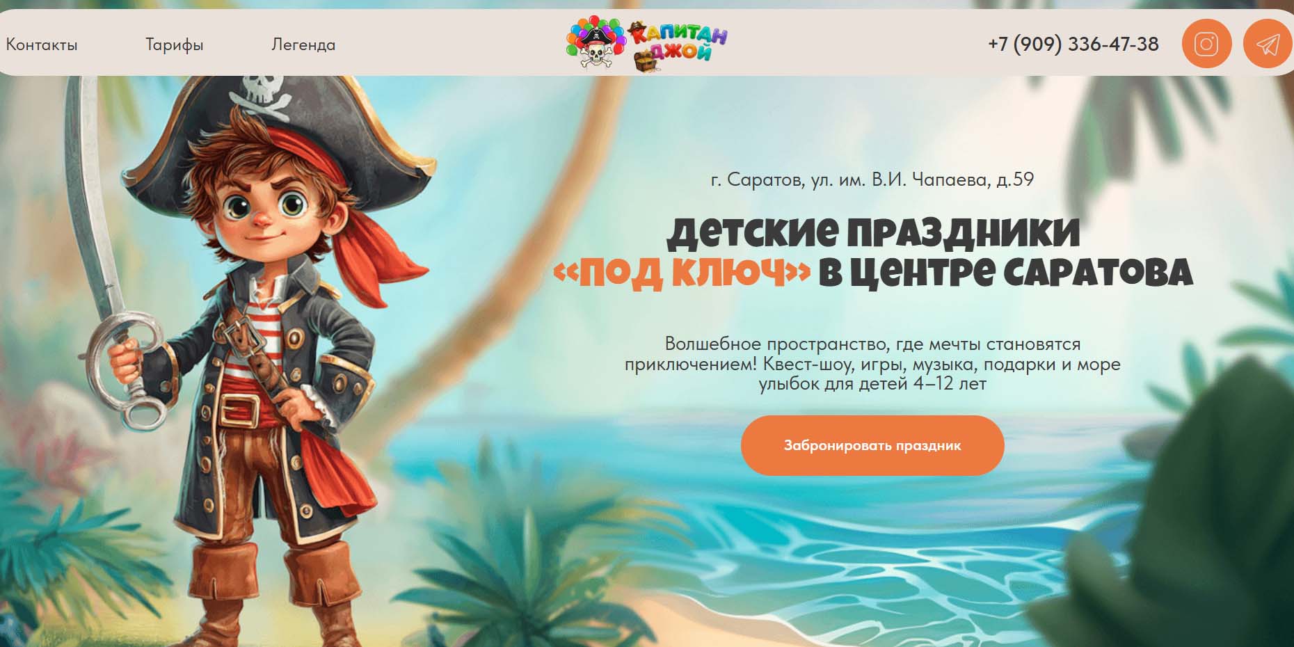 Пространство предлагает формат праздника «под ключ» для детей от 4 до 12 лет. Все программы объединяет пиратская тематика и продуманная легенда, а сценарии адаптируются под возраст и количество детей. Главная особенность — квест-шоу, где именинник и гости становятся героями приключенческой истории: ищут сокровища, решают логические задачи и проходят командные испытания. Все действие разворачивается в пространстве лофта площадью 130 кв. м, разделенном на игровую и фуршетную зоны, а также зону отдыха для родителей.