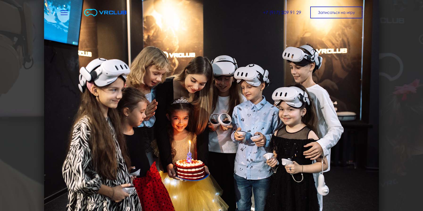 В клубе можно арендовать всё пространство целиком, а можно ограничиться залом. Оптимальный возраст именинников и гостей — от 8 лет, но формат подходит и для семейного отдыха. В распоряжении гостей новейшие гарнитуры, а библиотека игр огромна и разнообразна. Праздник можно организовать как для компании до 4 человек за одной VR-станцией, так и для большего числа гостей, чередуя активности и используя зону с приставками.