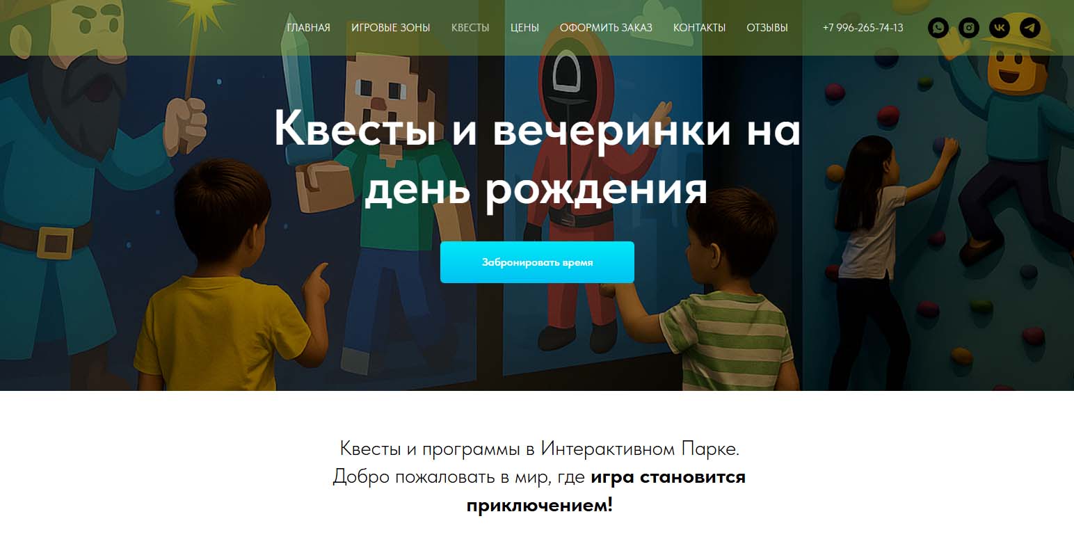 В этом пространстве детские праздники превращают в живые приключения. Программа строится по четкому сценарию: интерактивный квест с ведущим, затем активные игры. Сюжеты адаптируют под интересы детей. Задания подбираются под возраст и характер, в разновозрастной компании каждый получает свою роль. Ведущий сопровождает детей в течение всего праздника. Команда работает с 2021 года и имеет опыт проведения мероприятий для детей 6-13 лет, в том числе с особенностями развития.