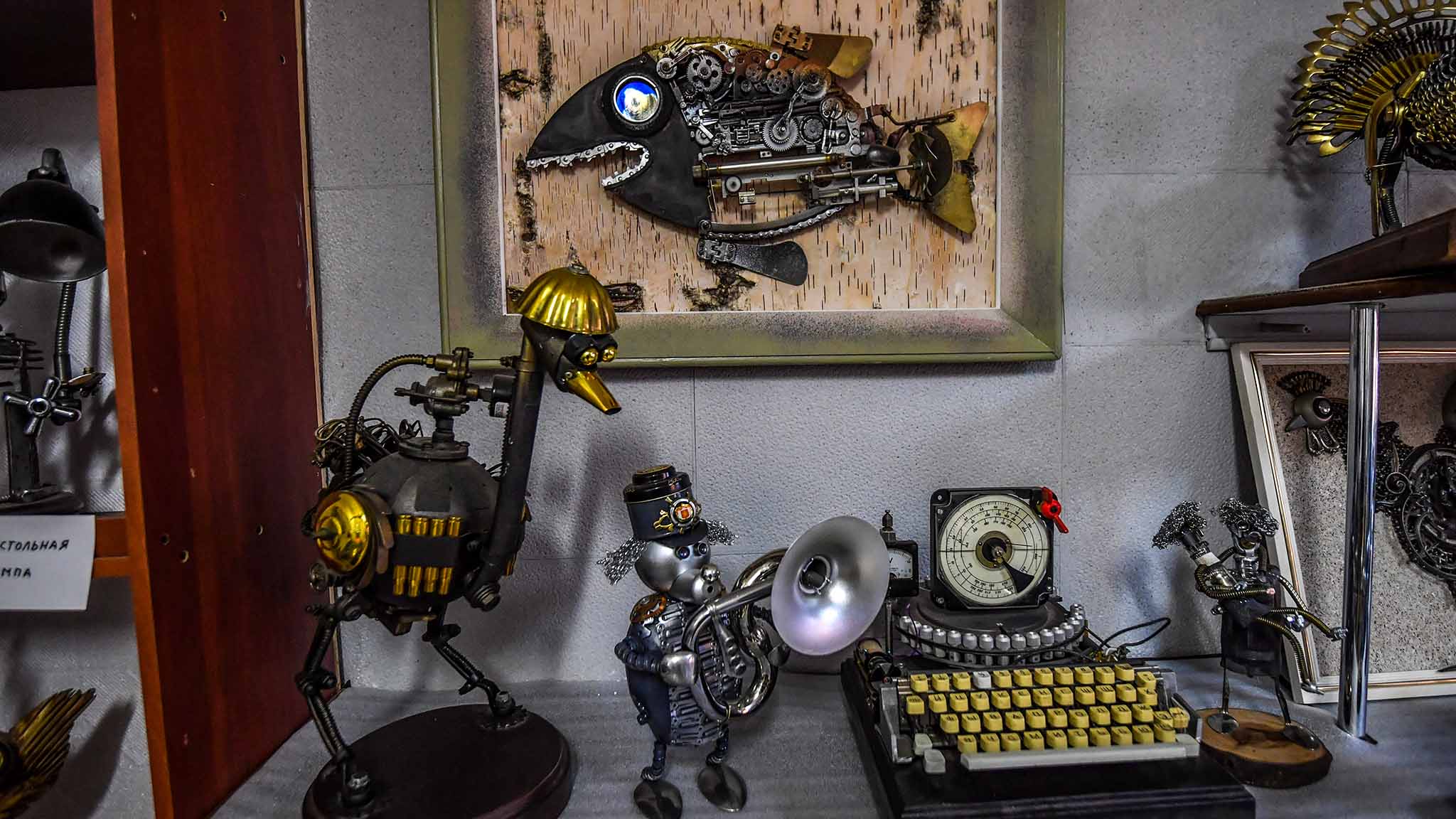 Здесь вы не познакомитесь с обитателями Селигера, зато увидите оригинальные творческие работы скульптора и художника Игоря Афанасенко в стиле стим-панк. Рыбы из пил, мясорубок и галстуков, техножук и скорпион из столовых приборов, пиратский паровоз — выставка небольшая, но очень запоминающаяся.