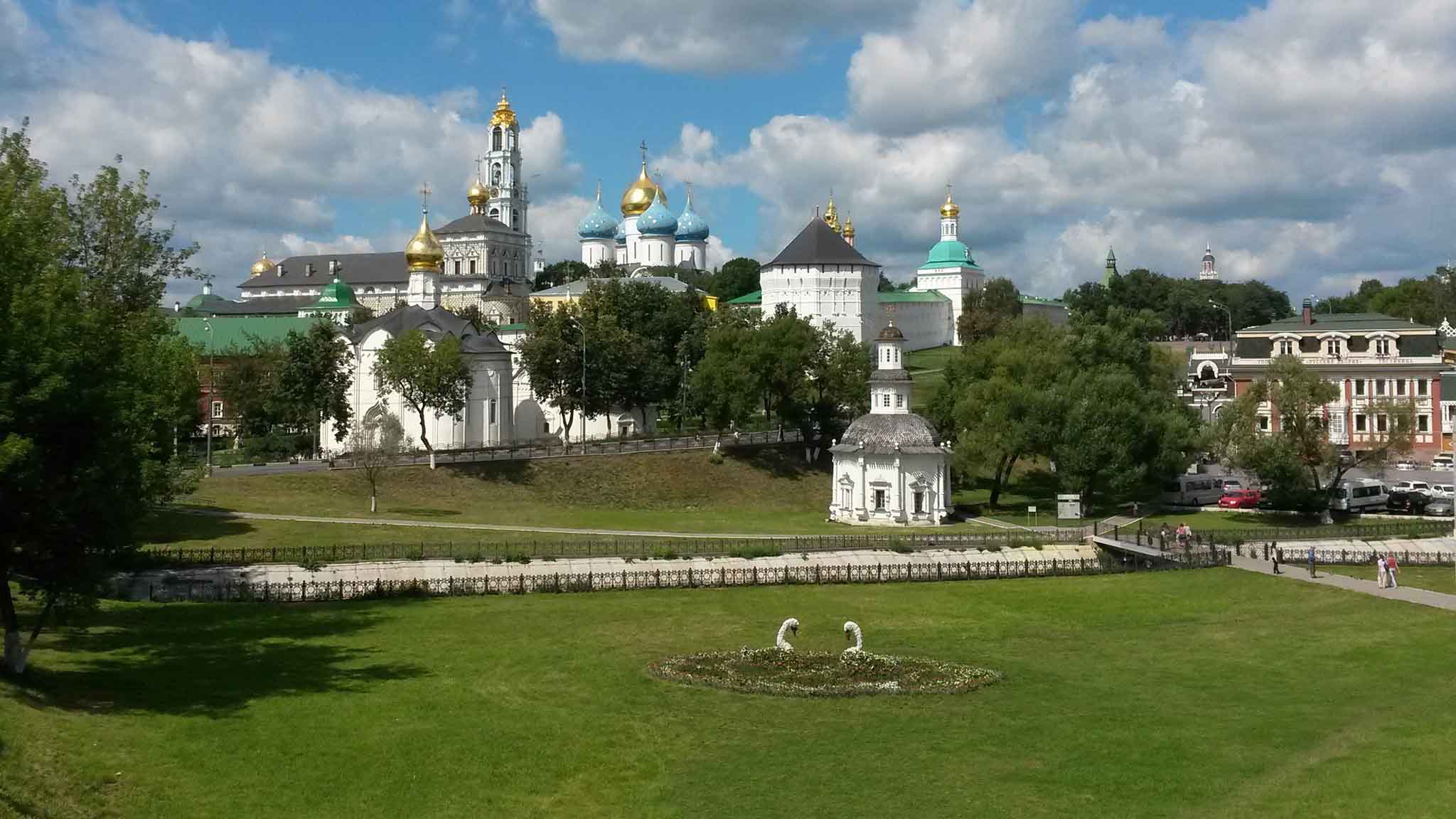 В городе множество достопримечательностей, но жемчужина Сергиева Посада – Троице-Сергиева Лавра. Архитектурный комплекс старинного русского монастыря имеет статус памятника Всемирного наследия ЮНЕСКО. Особенно хороша Лавра со смотровой площадки «Блинная гора», которая расположена на Вознесенской улице, 19. Раньше здесь были трактиры и лавки, а сейчас туристы приходят на холм, чтобы полюбоваться панорамой центральной части города. На площадке стоит памятный знак в честь 700-летия Сергия Радонежского.