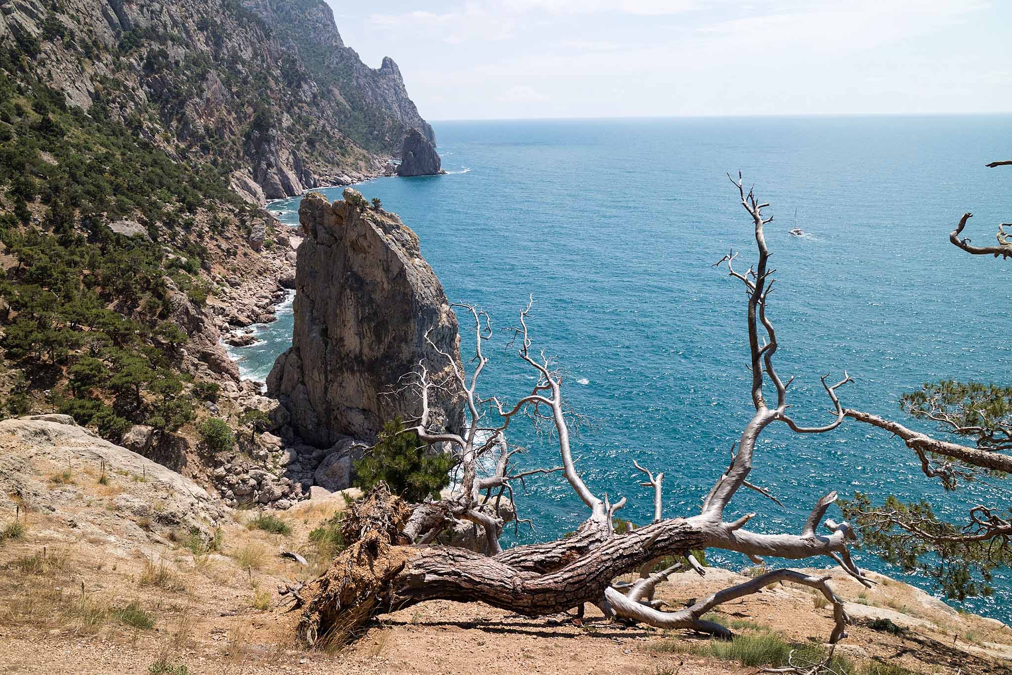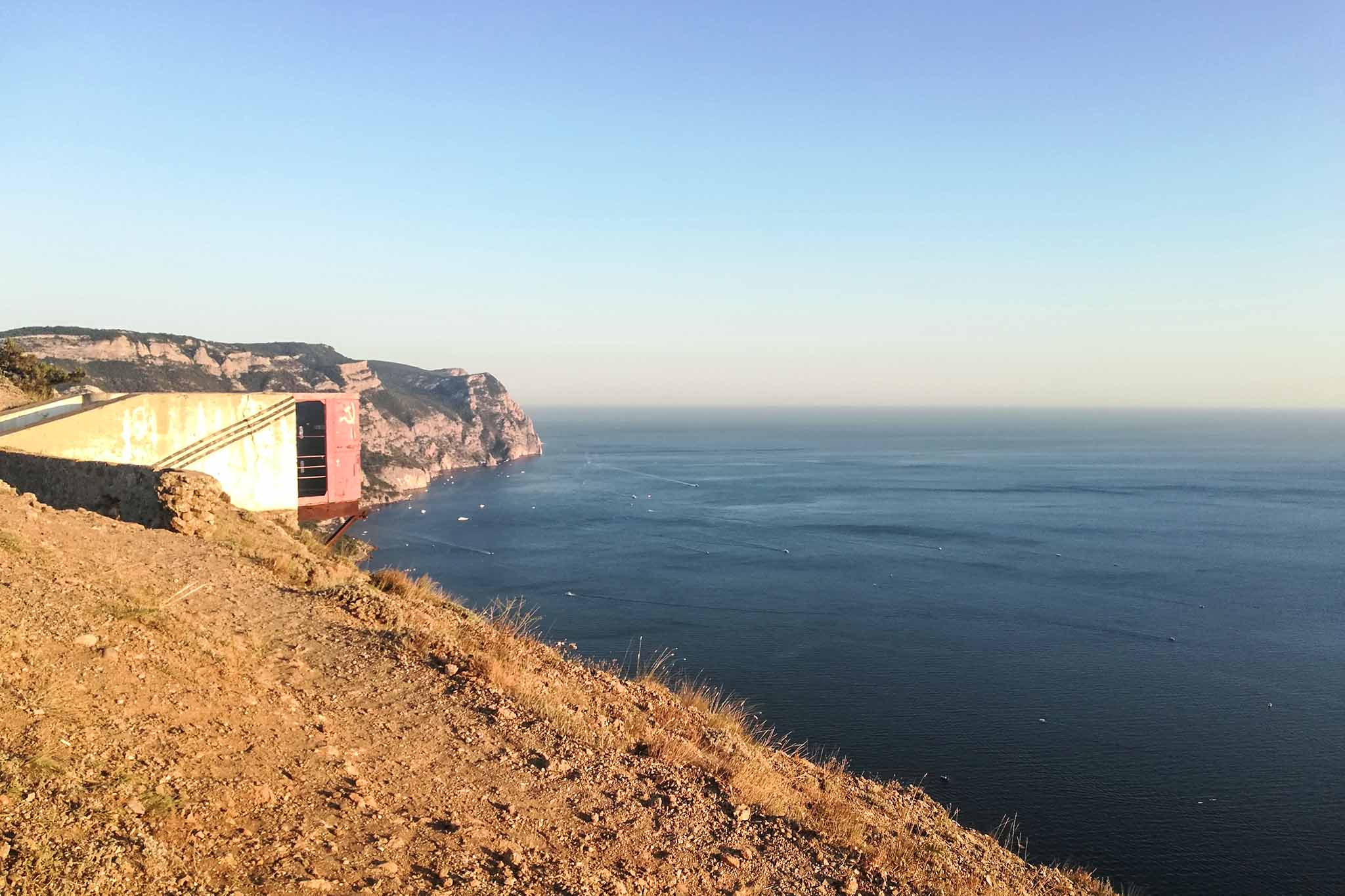 Несмотря на зловещее название, это лишь смотровая площадка в виде железной бочки, выступающая над обрывом — захватывающе, но безопасно. Отсюда открывается потрясающий вид на Балаклавскую бухту и мыс Фиолент.