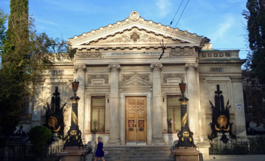 Возле входа в музей, здание старинное и привлекает внимание своей архитектурой.