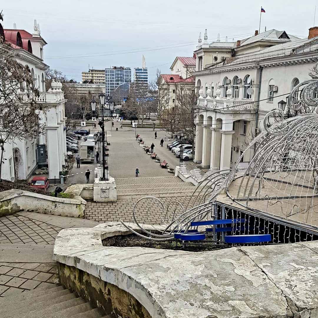 Из-за горного рельефа практически все улицы Севастополя расположены под уклоном. Порой подъемы и спуски такие крутые, что улицы сменяются лестницами. Кстати, их в городе более шестисот! А самый красивой и яркой, без сомнения, является Синопская лестница или Синопский спуск, названная так в честь победы Российского флота под командованием адмирала Нахимова в Синопской битве.