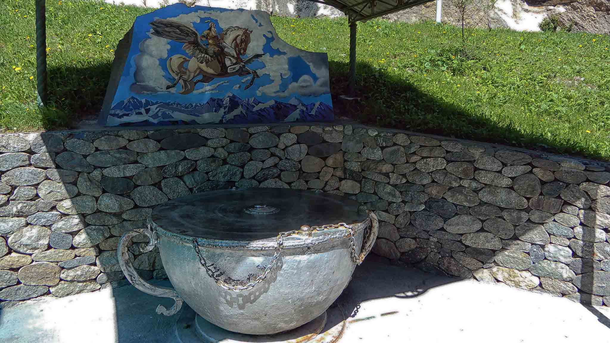У скульптуры всадника туристы обычно останавливаются, чтобы сделать фото впечатляющего монумента. А всего в 200 метрах от трассы можно найти минеральный источник.