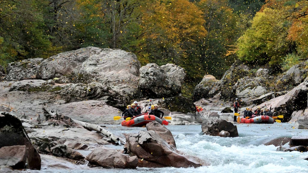 Однодневная программа с разнообразными активностями включает в себя сплав по горной реке, прогулку к смотровым с живописным видом и полет на тросе с дальнейшими приключениями на скалах головокружительных каньонов.