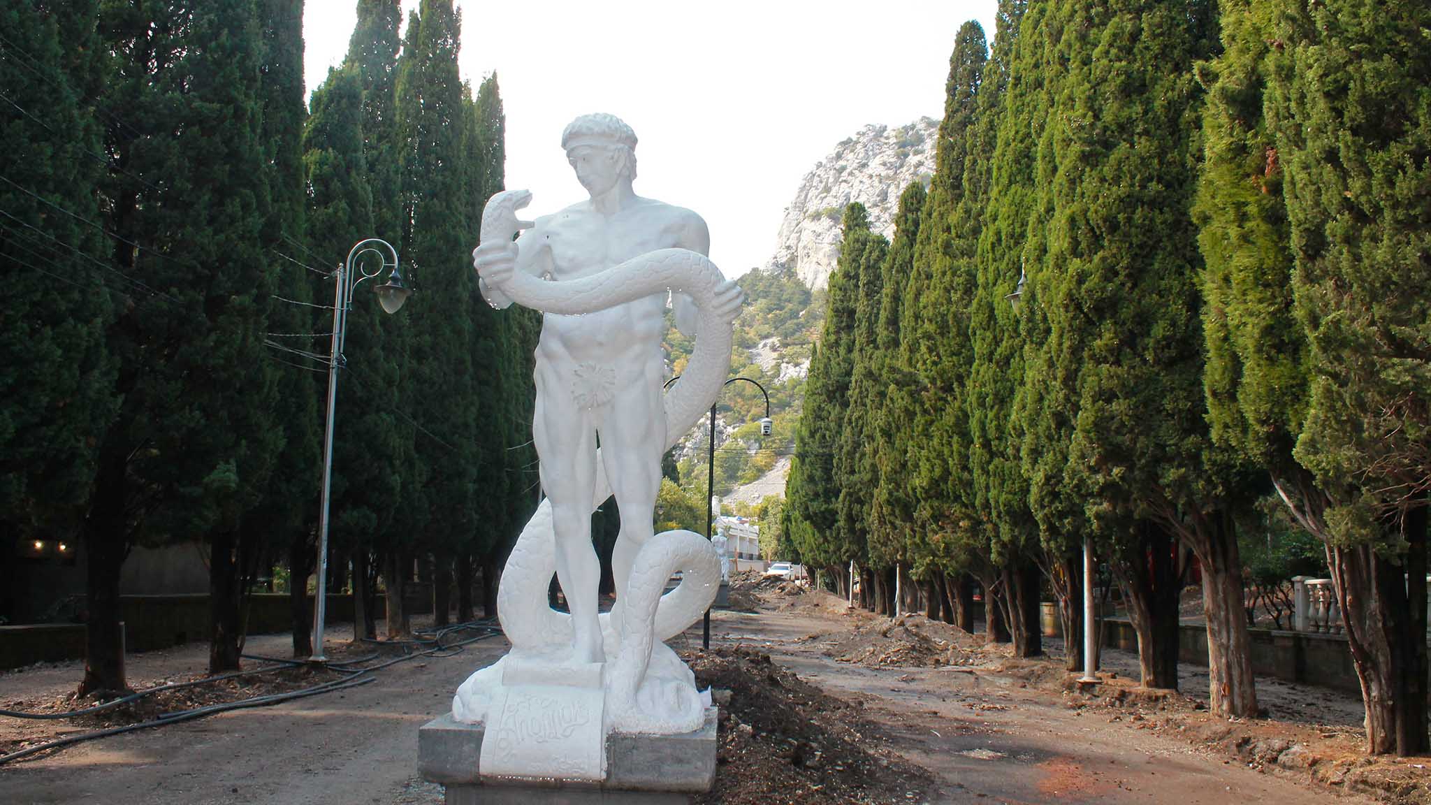 Здесь можно полюбоваться античными статуями, экзотическими южными растениями и великолепными видами на гору Кошка, скалу Дива и лазурное море.