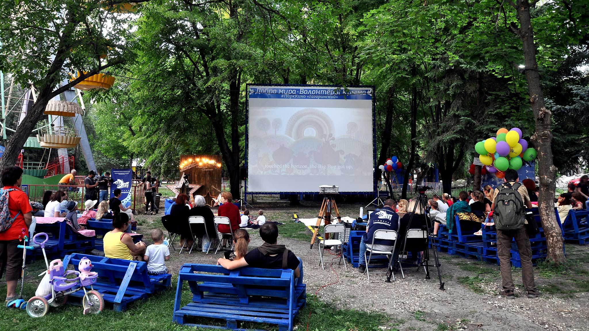 В августе сходите в кинотеатр под открытым небом в парке имени Гагарина. Вечером, когда уже нет 35-градусной жары, как днем, здесь показывают фильмы и мультики для детей. Стоит огромный экран, по периметру — мягкие пуфы, стулья и скамейки.