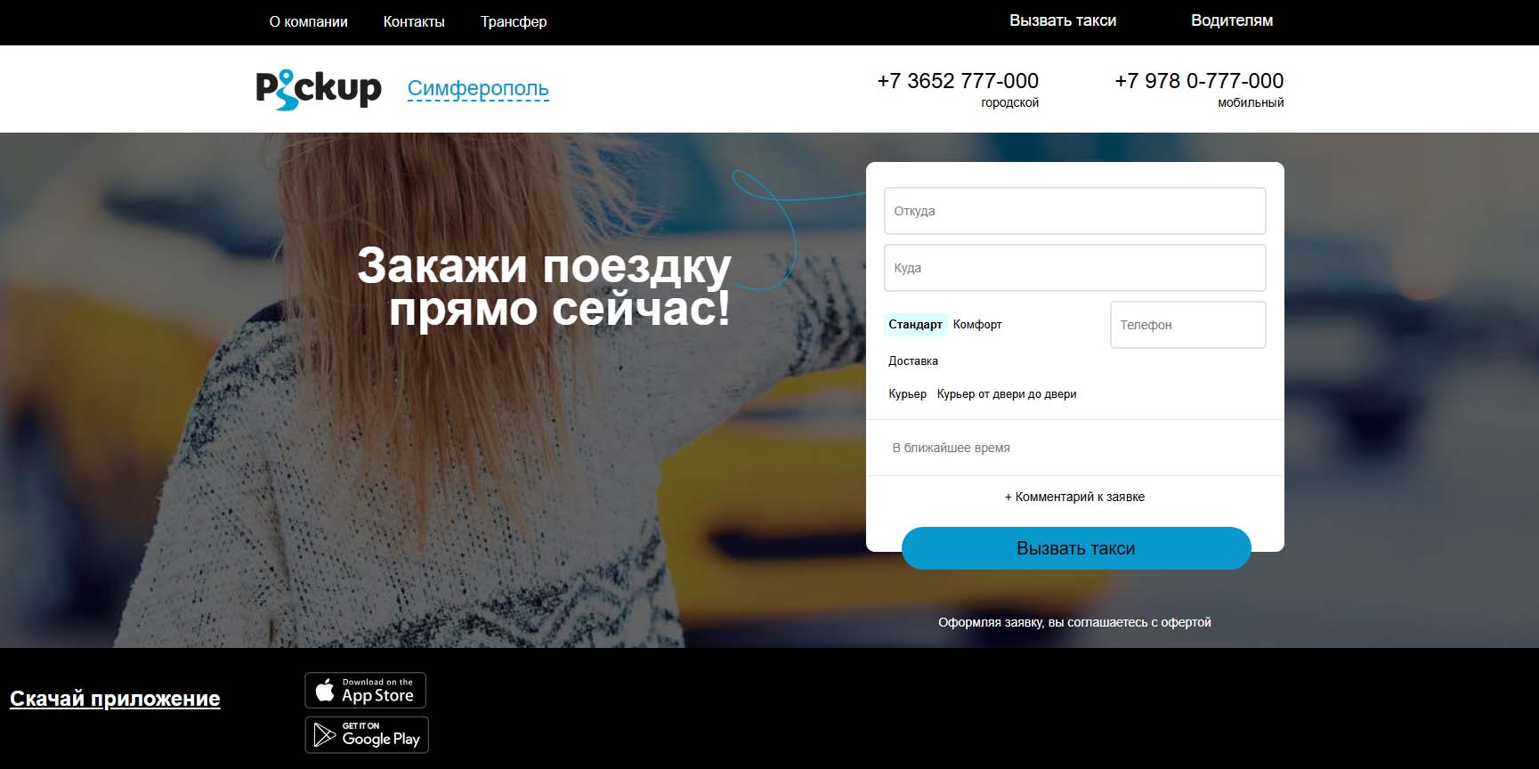 Эта служба такси занимается перевозками более 10 лет. Машины подают в том числе к дачным участкам, а итоговую стоимость поездки оператор называет еще при заказе. Помимо поездок по Симферополю и всему Крыму, клиенты могут воспользоваться услугами курьеров и доставки продуктов.