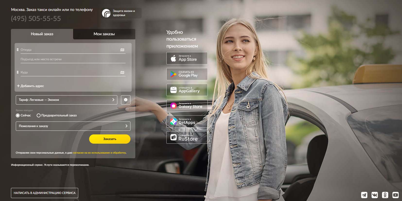 Мобильное приложение определяет местоположение пассажира, поэтому достаточно ввести адрес конечной точки маршрута, нажать кнопку «Заказать» и через несколько минут такси приедет за вами. В приложении удобно выбрать необходимые дополнительные опции: детское кресло, кондиционер в салоне, поездка с животным, багажник на крыше, а также оставить комментарий к заказу. Кроме того, здесь можно подобрать для себя не только класс автомобиля, но и способ оплаты — как наличными, так и банковской картой.