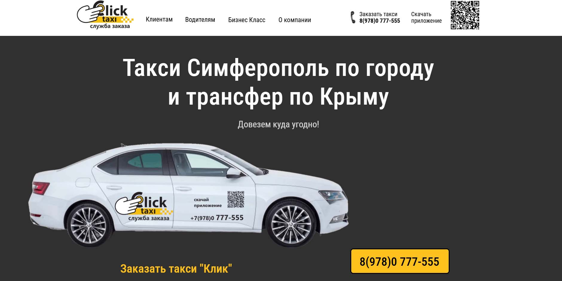 Такси работает в Симферополе и предлагает трансфер по всему Крыму, а также за пределы полуострова. Пассажирам предлагают перевозки разного уровня комфорта — от эконом- до бизнес-класса. Можно заказать автомобиль с детским креслом и кондиционером. Также «Клик» предлагает встречу с табличкой на вокзале и курьерскую доставку небольших посылок и личных вещей.