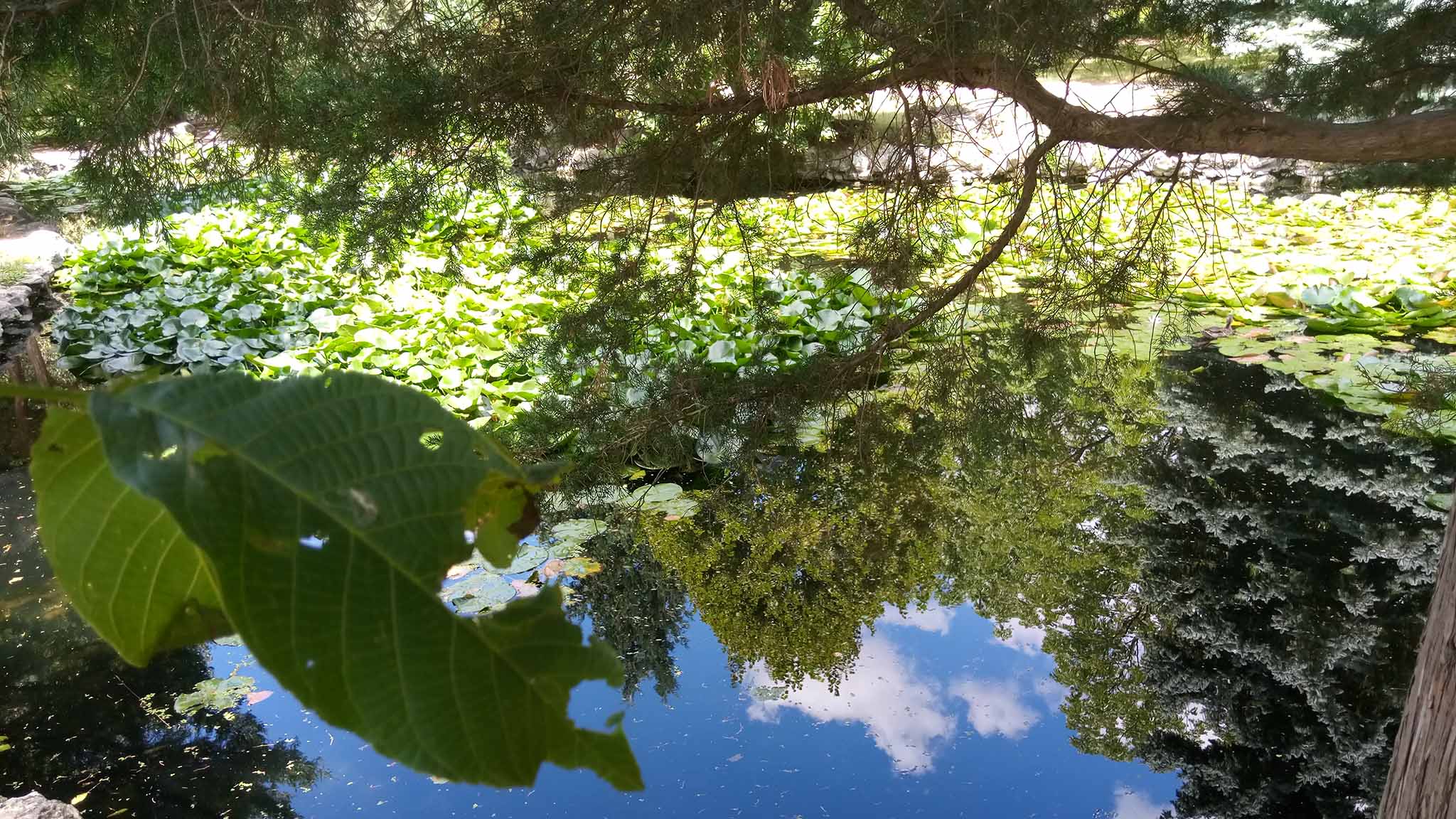 Прямо от калитки начинается прямая, как стрела, аллея, обсаженная столетними ливанскими кедрами вперемежку с сакурами. Хвойные лапы, сплетаясь между собой, создают густую тень, поэтому гулять тут комфортно в любую погоду. Пройдя немного по аллее, сверните по тропинке направо. Она приведет вас к первым, самым верхним озерам, которые, соединяясь друг с другом сетью подземных водотоков, образуют единый комплекс. Озера обсажены ивами и тамариском, а в зарослях водных растений гнездятся утки и камышницы.