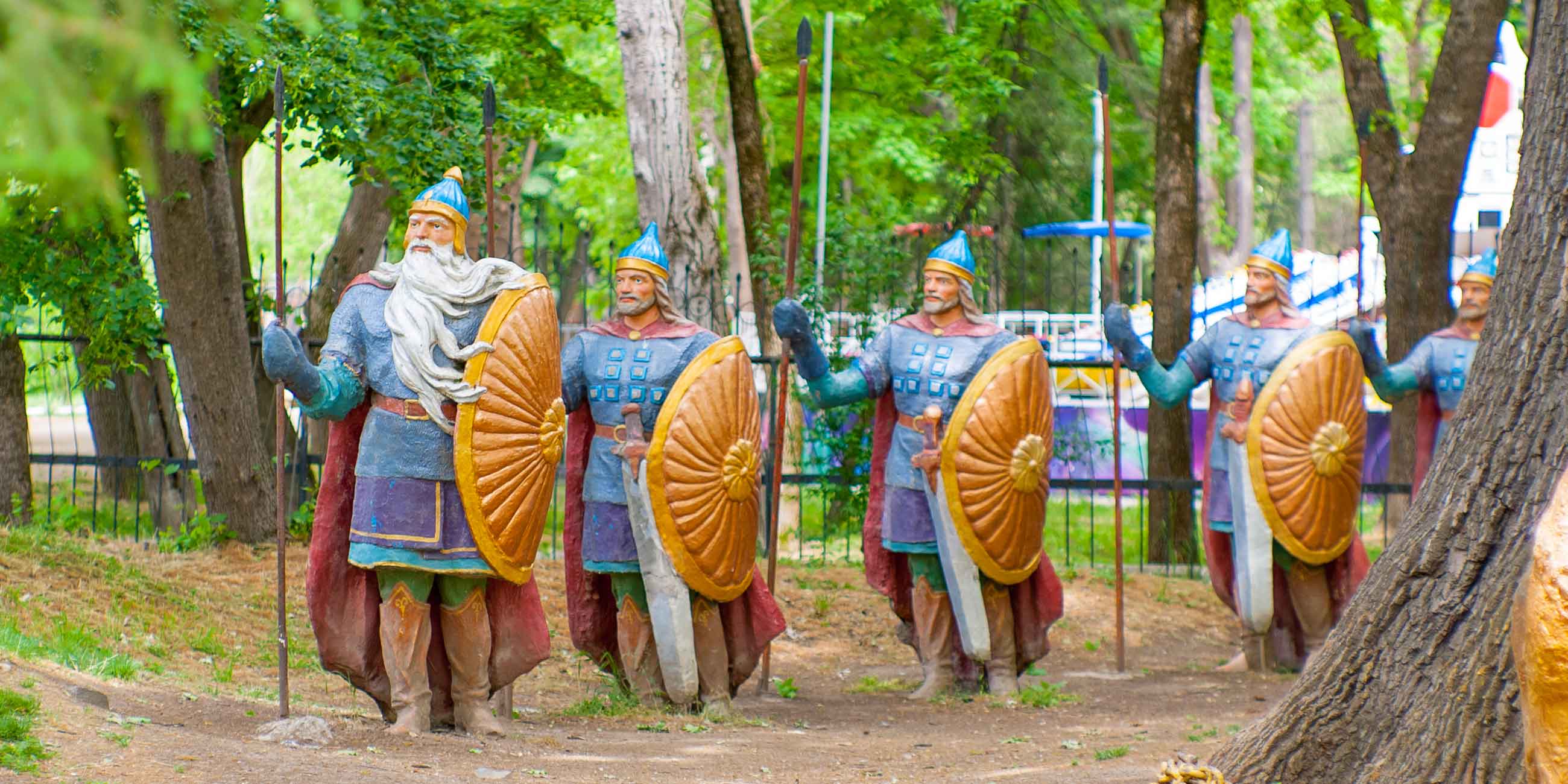 Всем посетителям нравится Поляна сказок: под широкой кроной старого дуба Кот ученый гуляет по цепи, тут же рядом Черномор и другие персонажи русских сказок.