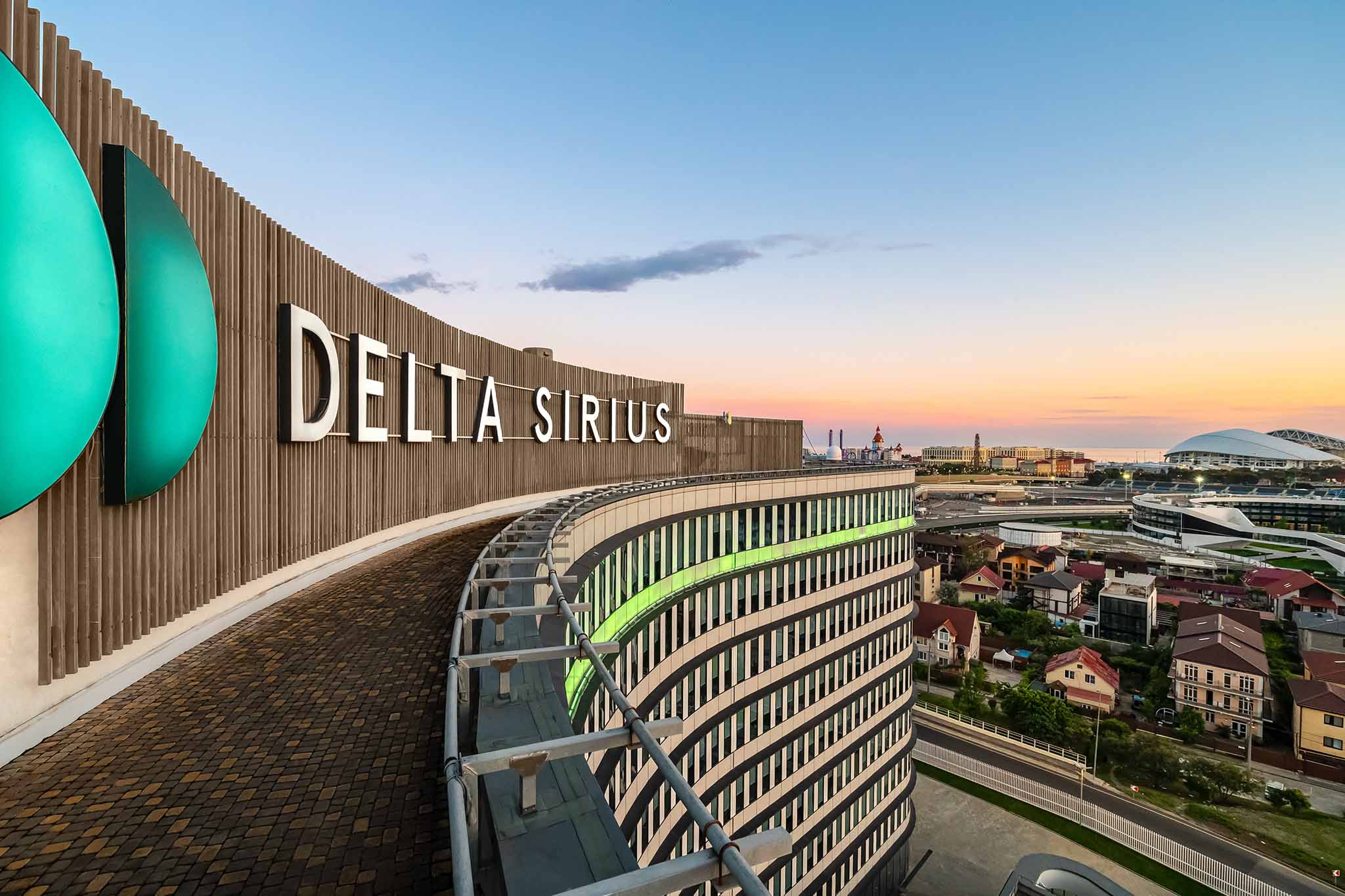 Cеть Sirius Hotels неоднократно становилась лауреатом премий и обладателем наград в сфере гостеприимства. Delta Sirius — флагманский бизнес-отель сети. Его отличает дизайнерское оформление номеров, из которых видны трасса Формулы 1, Олимпийский парк и горные вершины. В отеле работают ресторан и лобби-бар, спортивный зал и детская комната.