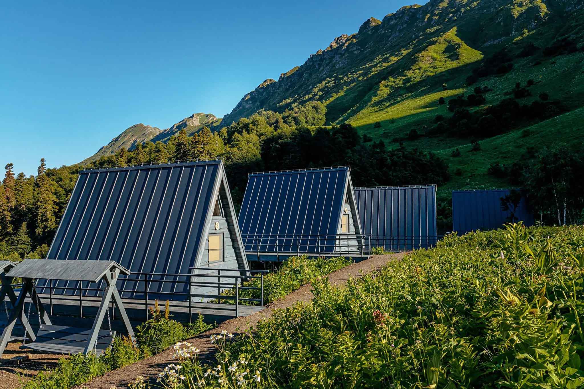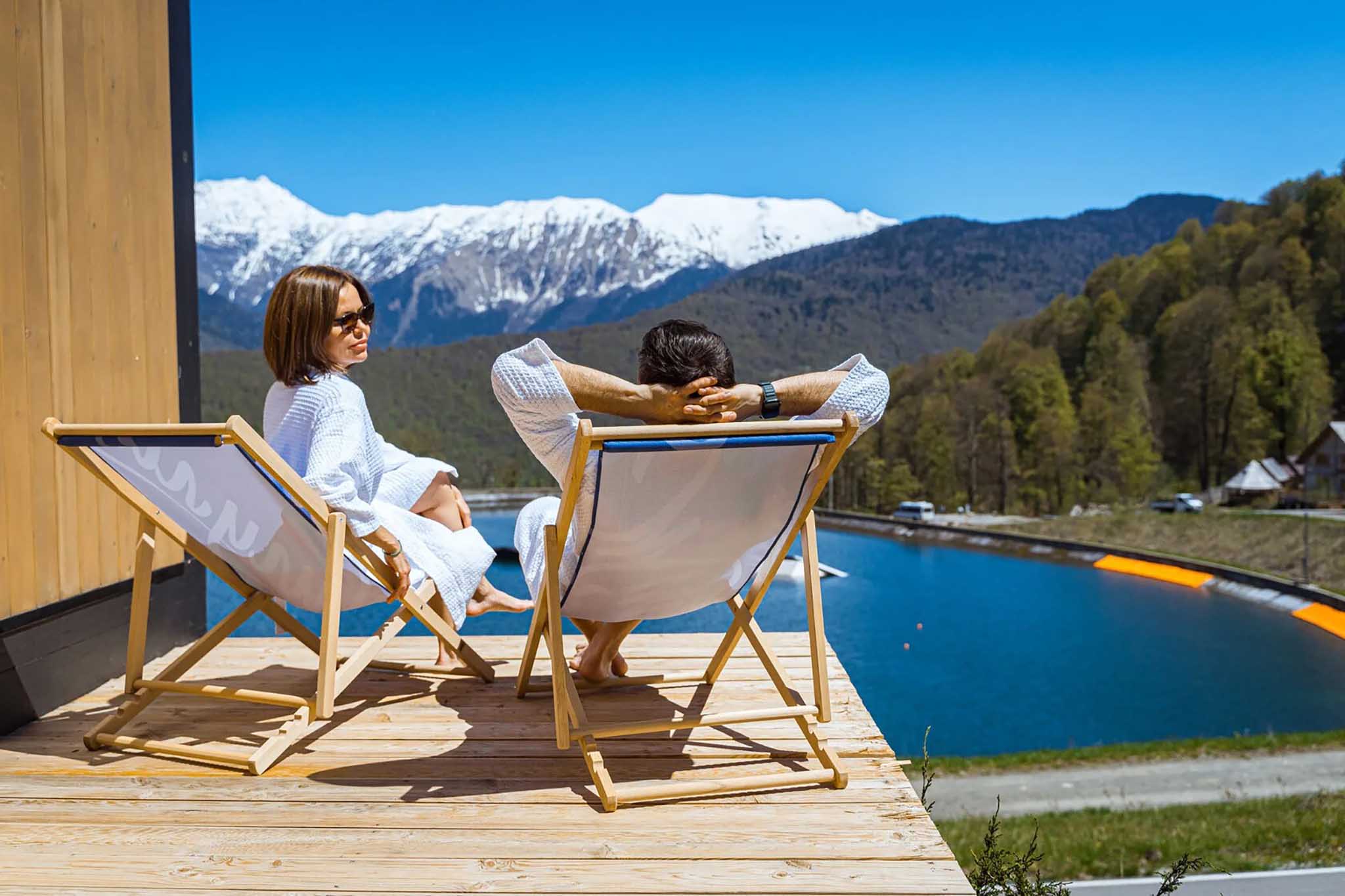 Здесь туристов ждут в любое время года. В горах Сочи построены элитная эко-вилла, сафари-тенты, деревянные А-домики и таунхаусы. Гости пользуются бесплатной парковкой, подогреваемым бассейном под открытым небом, костровой зоной, Wi-Fi и несколькими видами бань. В ресторане готовят блюда из экологически чистых продуктов, выращенных на курортах Большого Сочи.