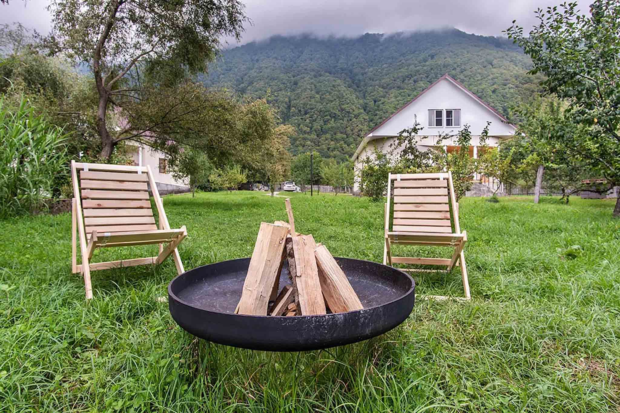 Гости могут остановиться в двухэтажном коттедже на 12 человек и в палатках на деревянных настилах. И там, и там есть удобные двуспальные кровати. Отдыхающие хвалят жаркую баню, хорошо оборудованную летнюю кухню, купания в прохладной горной реке, прогулки по кавказскому лесу и поход к высокому водопаду.