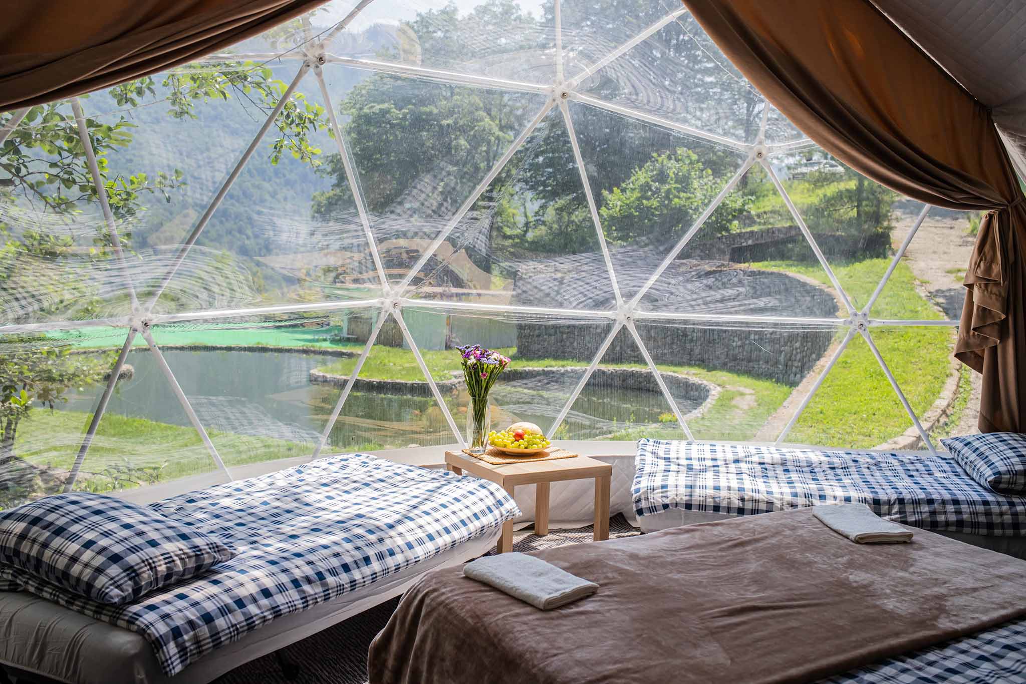 3. Выберите формат проживания. Для романтического отдыха вдвоем подойдет небольшой шатер-сфера или сафари-тент. Семьям с детьми или компании друзей лучше остановиться в просторном экодоме со всеми удобствами.