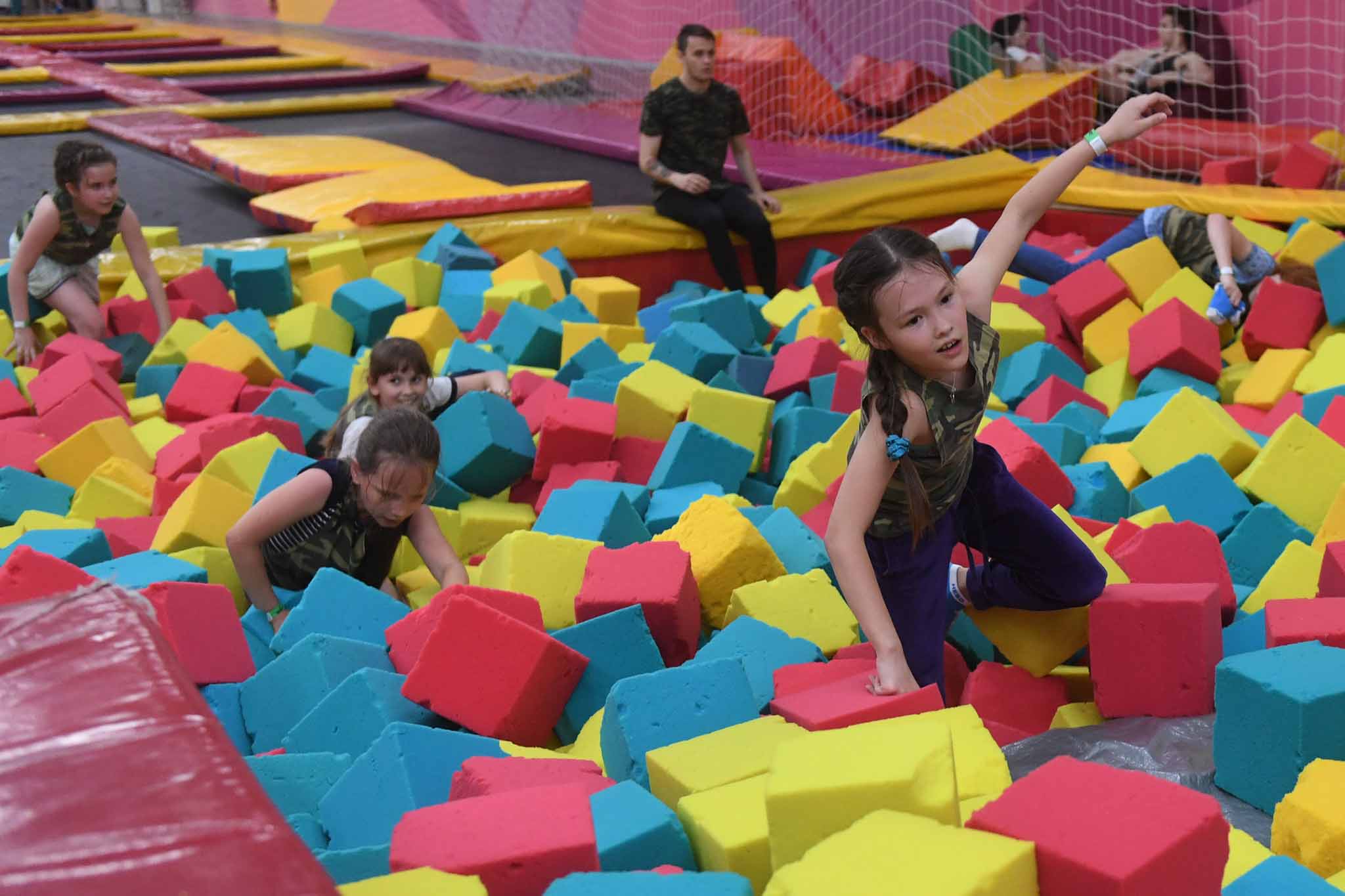 Батутно-развлекательный центр для всех возрастов — детей, подростков и взрослых. У центра нет возрастных ограничений, но до 18 лет просят приходить с родителями. В распоряжении гостей — 28 батутов, поролоновые бассейны, скалодром для экстремалов, VR-пространство с играми, кафе. Здесь опытные инструкторы научат делать сальто с нуля за 8 тренировок.