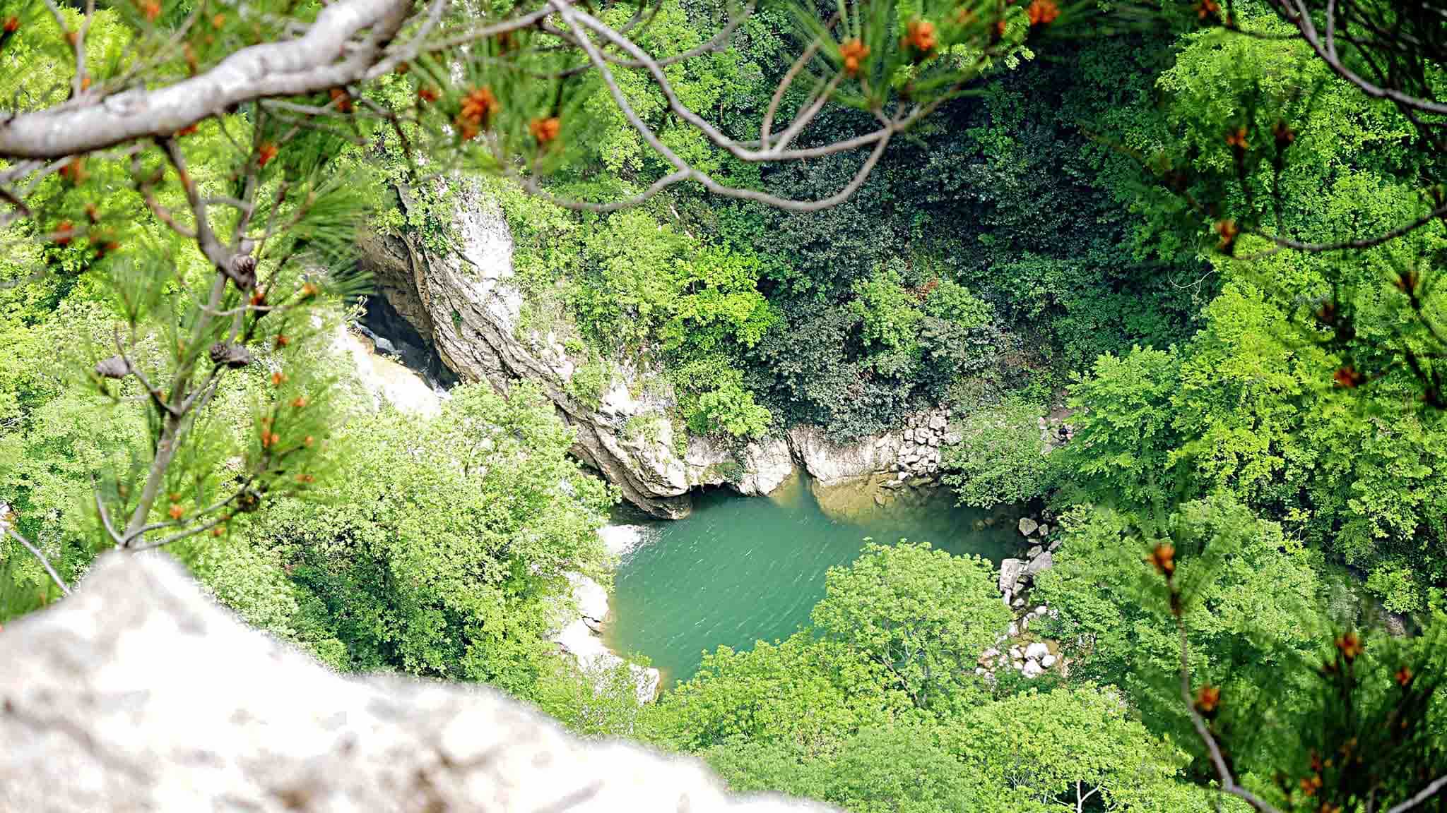Возле обрыва находится маленькая пещера, куда туристов пускают за отдельную плату. Для безопасности всем выдают каски. Интересна не сама пещера, а ведущая в нее металлическая лестница, которая закреплена на отвесной скале.