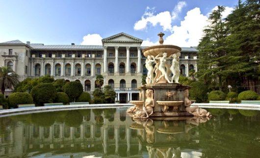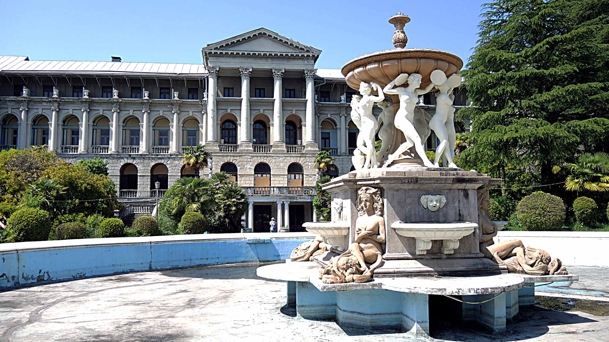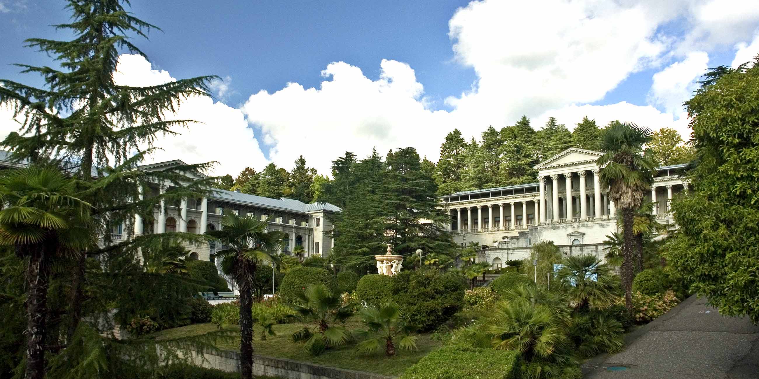 Роскошь ампира, зелень пальм и шикарный фонтан на широкой площади — так задумывался санаторий имени Серго Орджоникидзе в Сочи и таким его видели тысячи отдыхающих. Санаторий представляет из себя несколько корпусов, многие из которых украшены росписями и колоннами. Здания утопают в заросшем парке со множеством извилистых тропинок и потайных беседок.