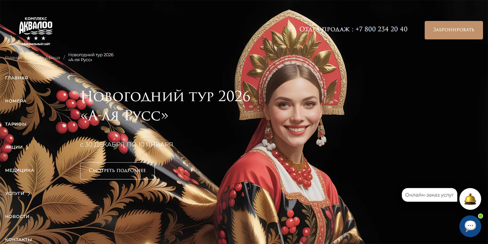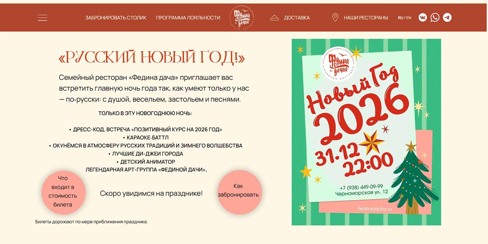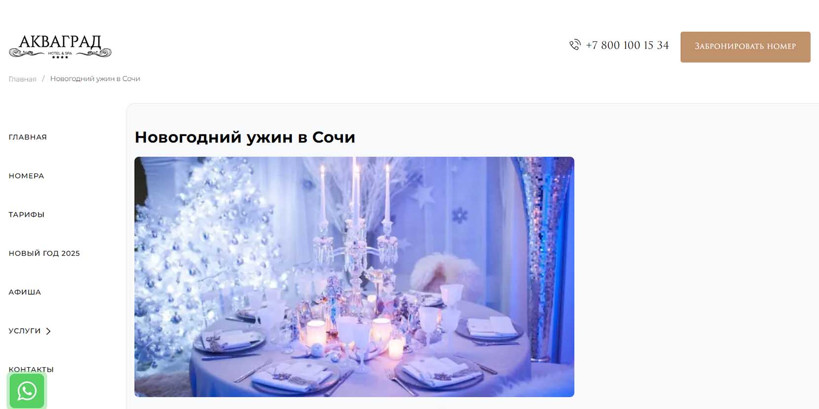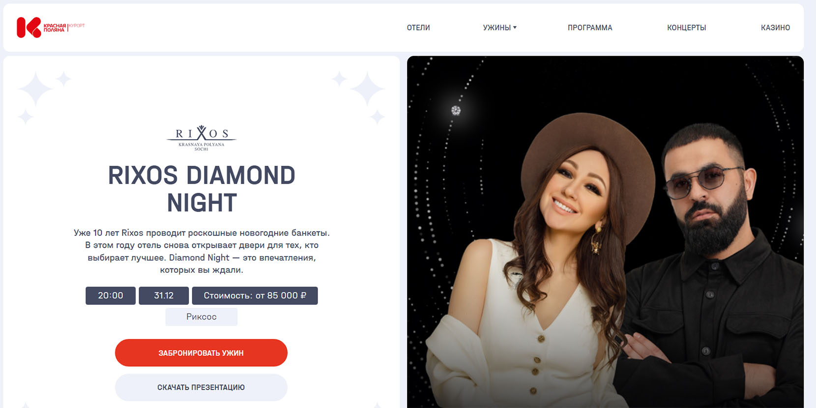 | Средний чек | билеты на новогодний банкет — от 8500 рублей, аренда номера на сутки — от 6000 рублей |