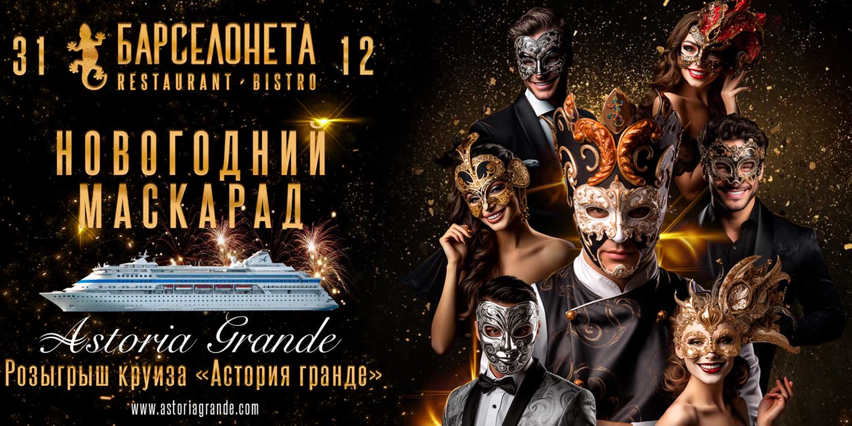 Ресторан каталонской кухни в испанском стиле с видом на Черное море. В новогоднюю ночь гостям предлагают насладиться кухней средиземноморья. Праздничный банкет пройдет в маскарадном стиле с яркими декорациями, зажигательной музыкой, специальными угощениями и выступлением DJ Гуров, ICBAND. Также будут призы и подарки, ведущий и Дед Мороз со Снегурочкой. В стоимость включен новогодний сет блюд и напитков из мира вкусов Барселоны.