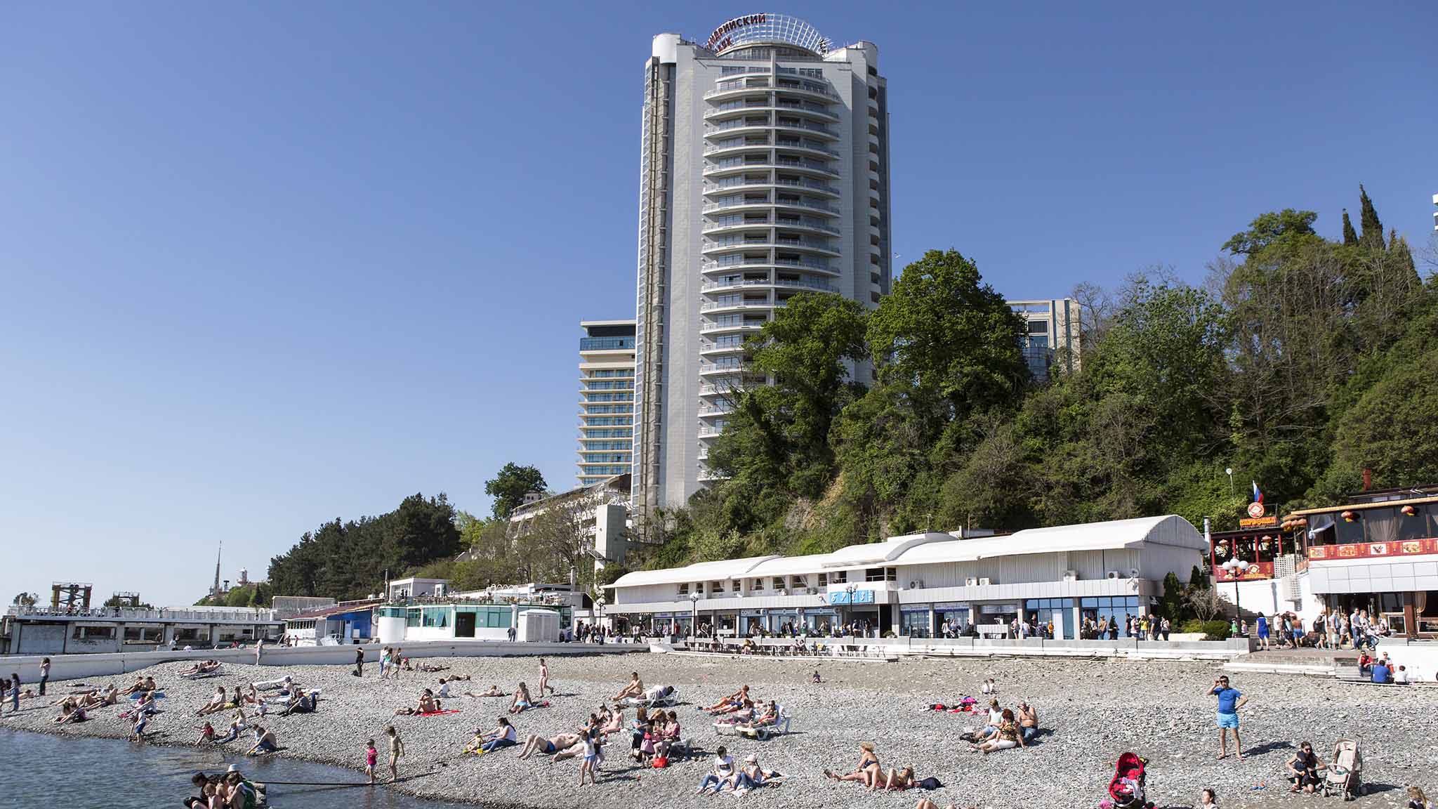 Температура воды в море в среднем у берегов Сочи в июле составляет +24…+25 градусов. В течение месяца колеблется в пределах от +20 до +27 градусов. Все зависит от штормов и облачности.