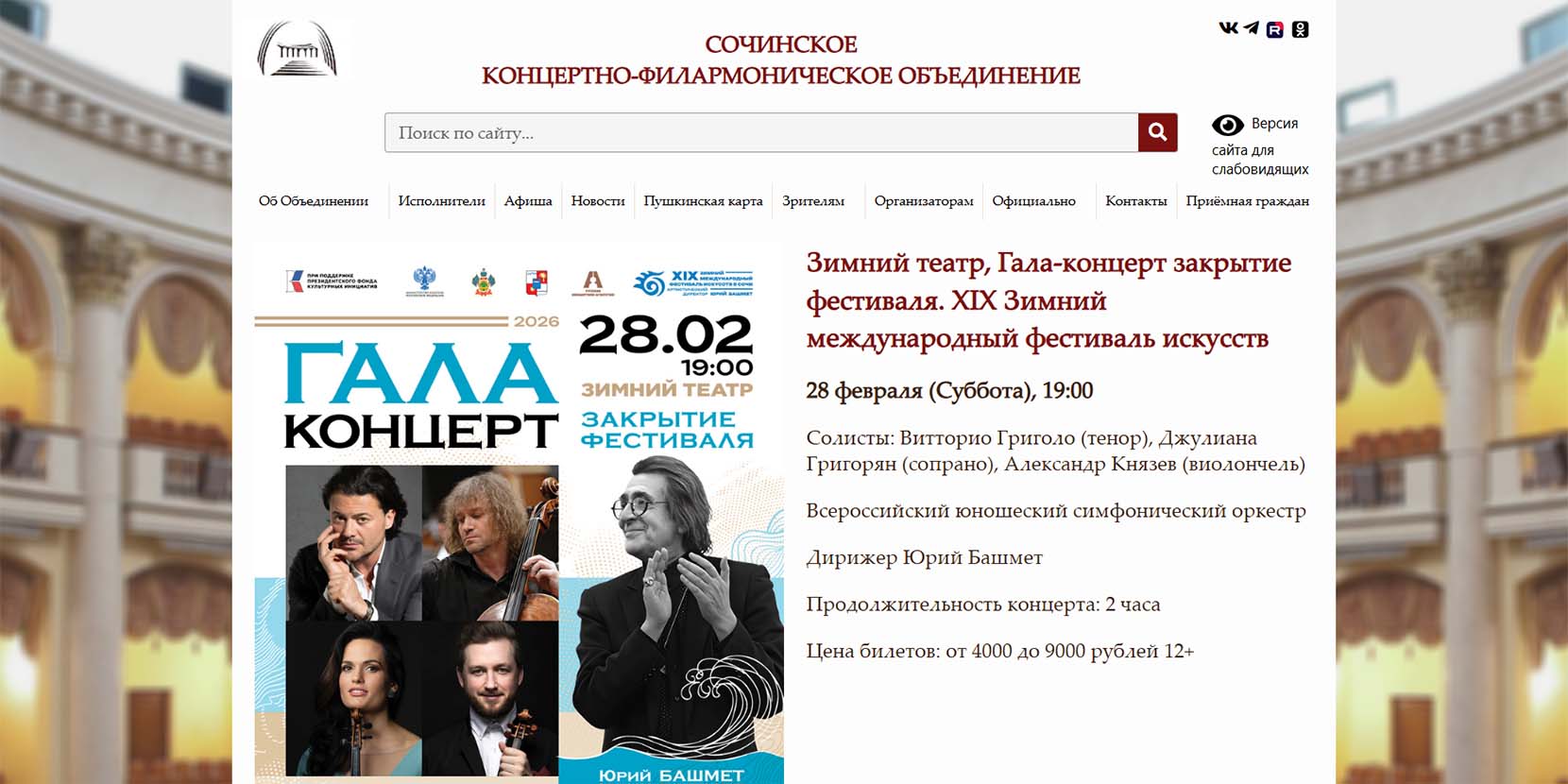 В этот вечер на сцене Зимнего театра соберутся ведущие музыканты и творческие коллективы: Юрий Башмет, Денис Мацуев, Василий Степанов, Всероссийский юношеский симфонический оркестр и многие другие.