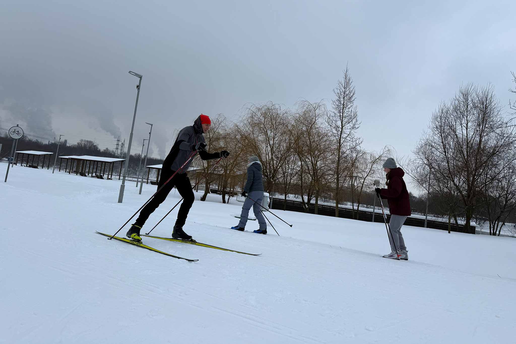 Параллельно идут колея под классику и широкая дорога под коньковый ход — все 12,5 км! Раньше я несколько раз ходил на лыжах в «Сокольниках» и «Измайлово». Там накатка трассы была очень ограниченной, чаще приходилось скользить по обычным тропинкам или прокладывать лыжную самому в лесочке. В парке 850-летия ты по сути оказался на большущей профессиональной лыжне и можешь кататься в удовольствие. Если неуверенно стоишь на лыжах, хочется потренироваться, есть много закутков, где вполне можно проверить себя.