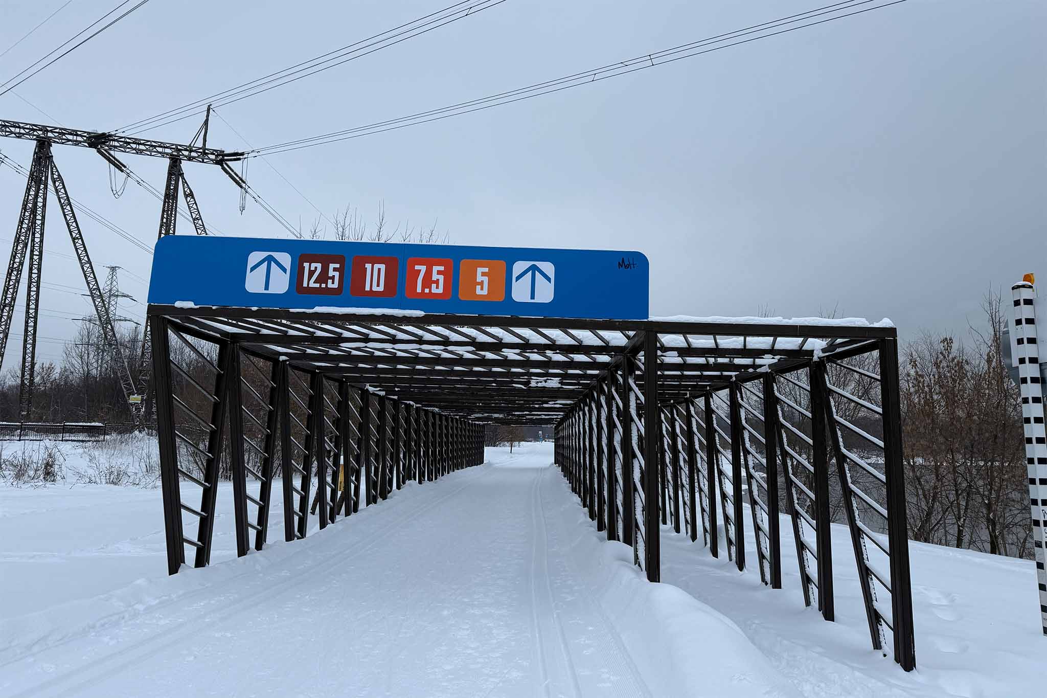 Выхожу на трассу и наконец понимаю, в чем заключается крутость. Маршрут отгорожен от прогулочных дорожек пешеходов. Есть куча указателей и схем. Лыжню каждую ночь прокатывают ратраком — машиной для утрамбовки снега.