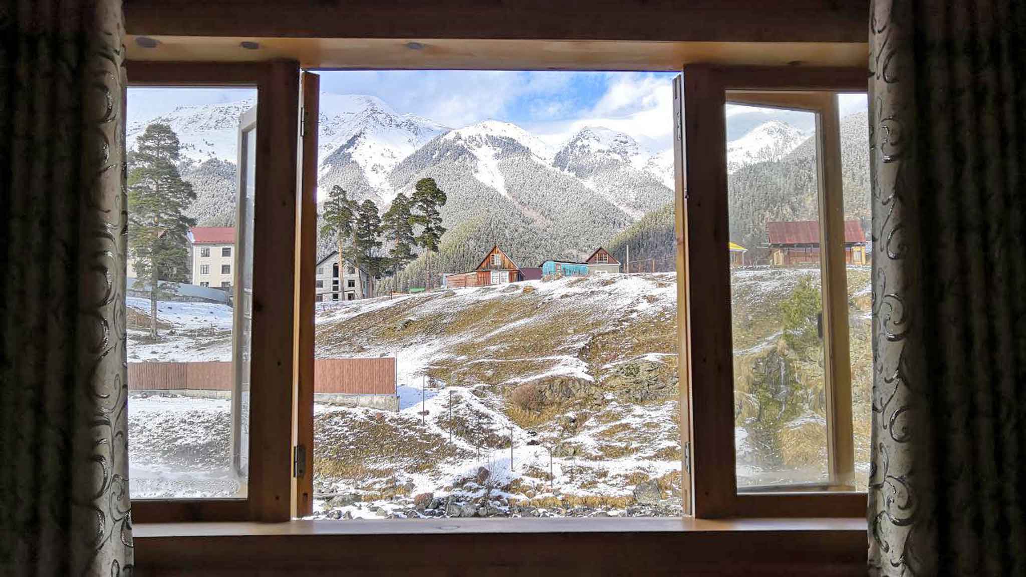 Та же картина в Домбае. К тому же, из-за капризов погоды есть вероятность часы и даже сутки просидеть отрезанными от мира.