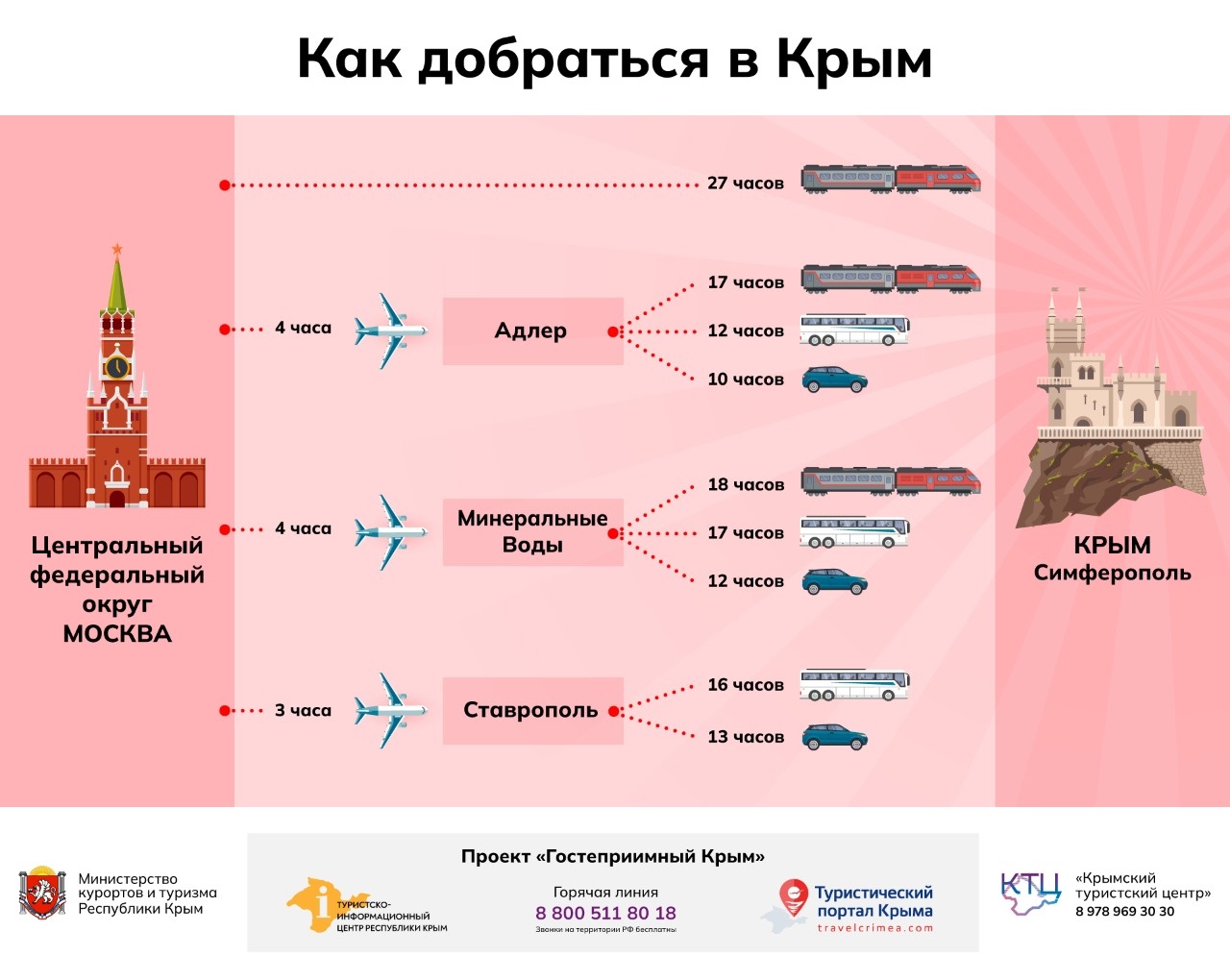 В общем, уехать в Крым стало сложнее и дороже. И билетами обязательно стоит озаботиться заранее. Если же «поезд ушел», есть обходной маршрут. Сначала добираемся до Адлера — поездом, автобусом или самолетом (тамошний аэропорт работает). А потом едем на поезде Адлер-Симферополь. Главный минус — надо готовиться к долгой поездке. Путь из Адлера в Симферополь занимает 18 часов, цена в плацкарте — чуть более 2300 рублей. В итоге на путешествие, скажем, из Москвы придется потратить почти сутки, даже если часть пути проделать на самолете.