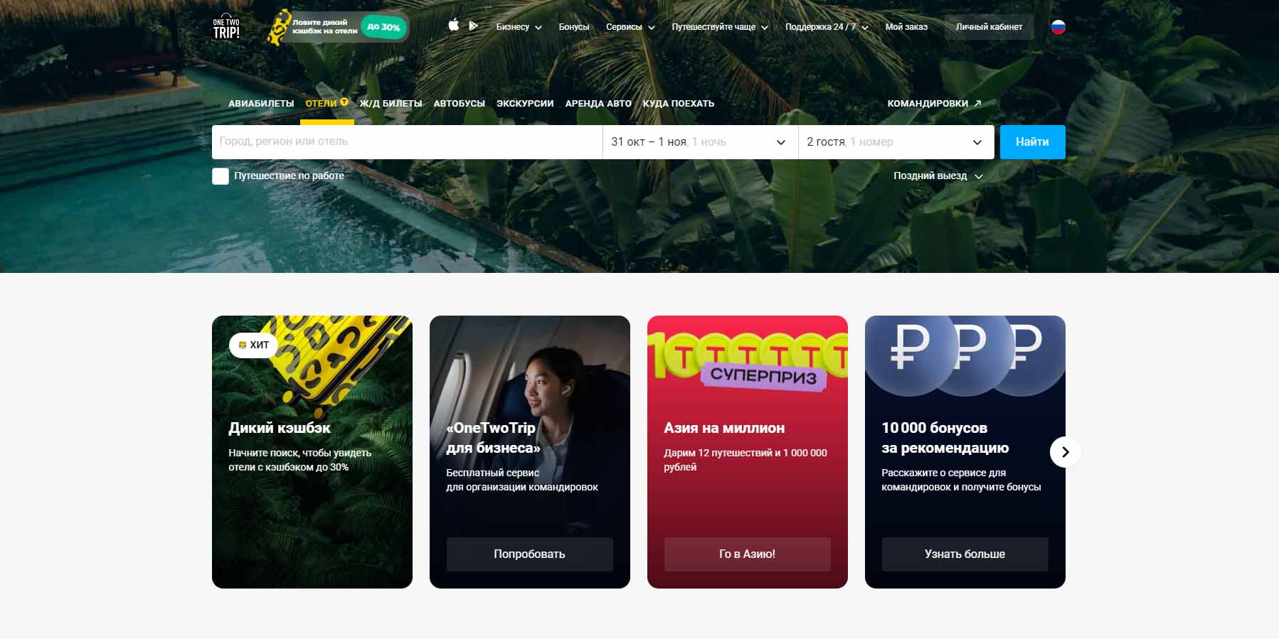 Предлагают бронирование отелей по всему миру с кэшбэком — в базе сервиса 1 млн вариантов размещений. Управлять своим заказом удобно в личном кабинете или мобильном приложении. Оплата возможна в момент бронирования или на месте во время заселения, но это зависит от политики самого отеля. Можно забронировать гостиницу в рассрочку, есть различные акции и промокоды для новых клиентов.