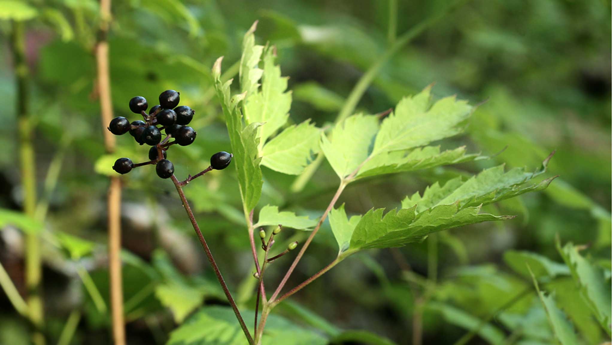Как опознать: травянистое растение высотой до 70 сантиметров. Листья крупные, дважды-триждытройчатые. Цветки белые, в густом колосовидном соцветии длиной около 15 сантиметров. Плоды черные, сочные блестящие ягоды.