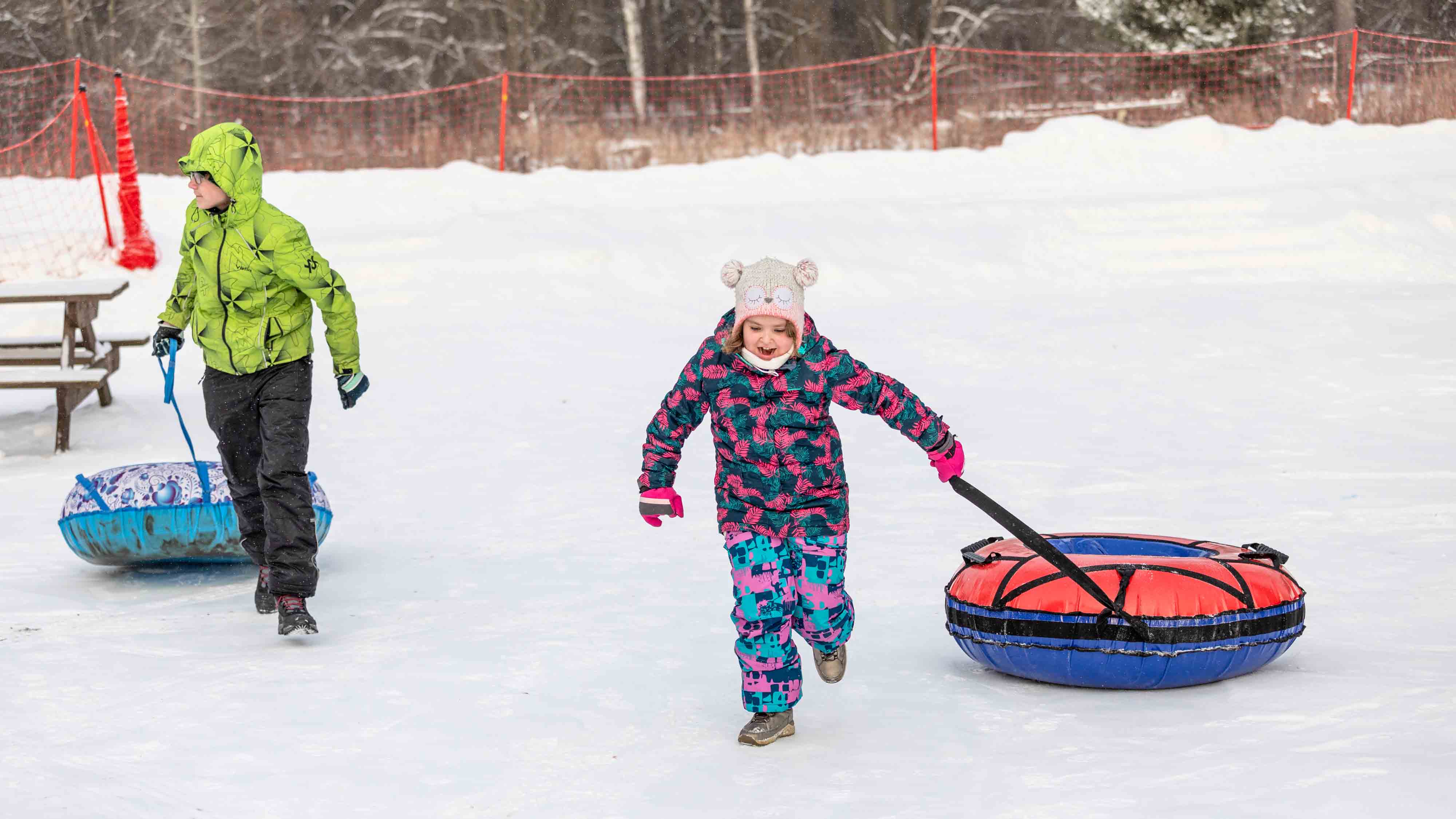 Главная гора, со склонов которой катаются, — высотой 225 метров. Всего десять трасс (+ учебная и тюбинговая) шириной до 70 метров. Перепады высот на отдельных участках достигают 90 метров. Трассы довольно протяженные. Из десяти пока открыта половина, оставшиеся будут запускать уже в разгар сезона. Есть склон для тюберов и тюбинг-карусель. Вместо «крылатых качелей» здесь прицепили надувные «ватрушки».