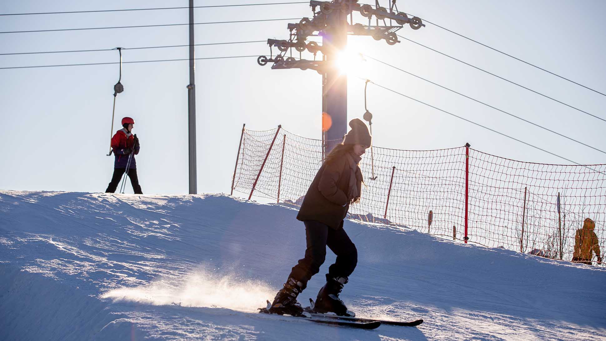 Наиболее «комплексный» зимний курорт региона: кроме склонов (их 12, всех уровней сложности), есть тюбинговая горка, каток. В этом году стали выдавать в прокат сноускуты (это сноуборд с рулем самоката) и электроснегокаты (миниатюрные снегоходы на батарейках). Так что те, кто собирался перевести дух от самокатчиков хотя бы зимой, мы вас расстроим — они все здесь. На горнолыжке работает детская школа катания (2900 руб. за урок), спа-комплекс, пара ресторанов и отель.
