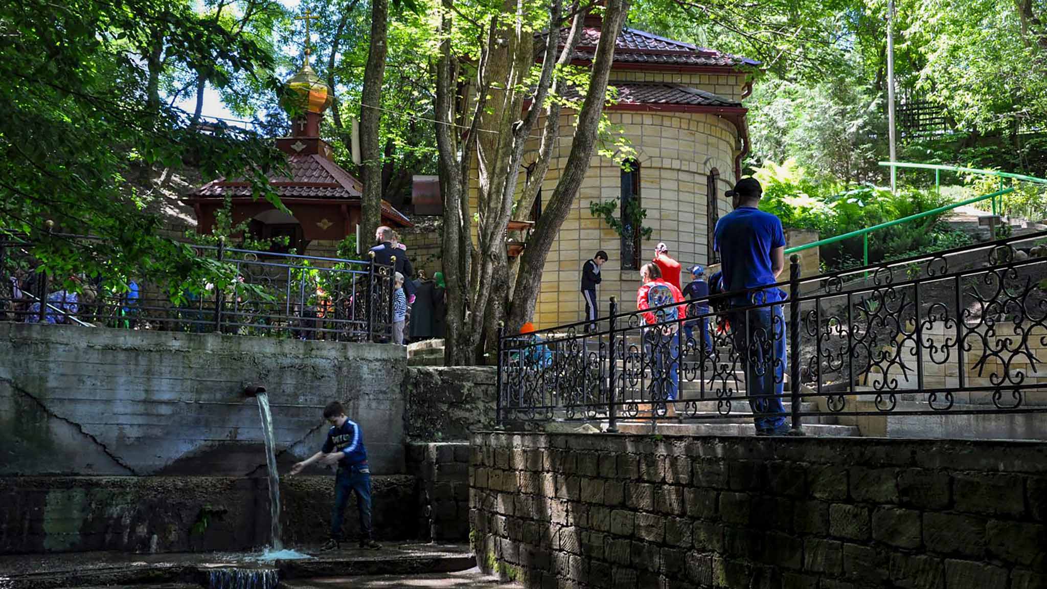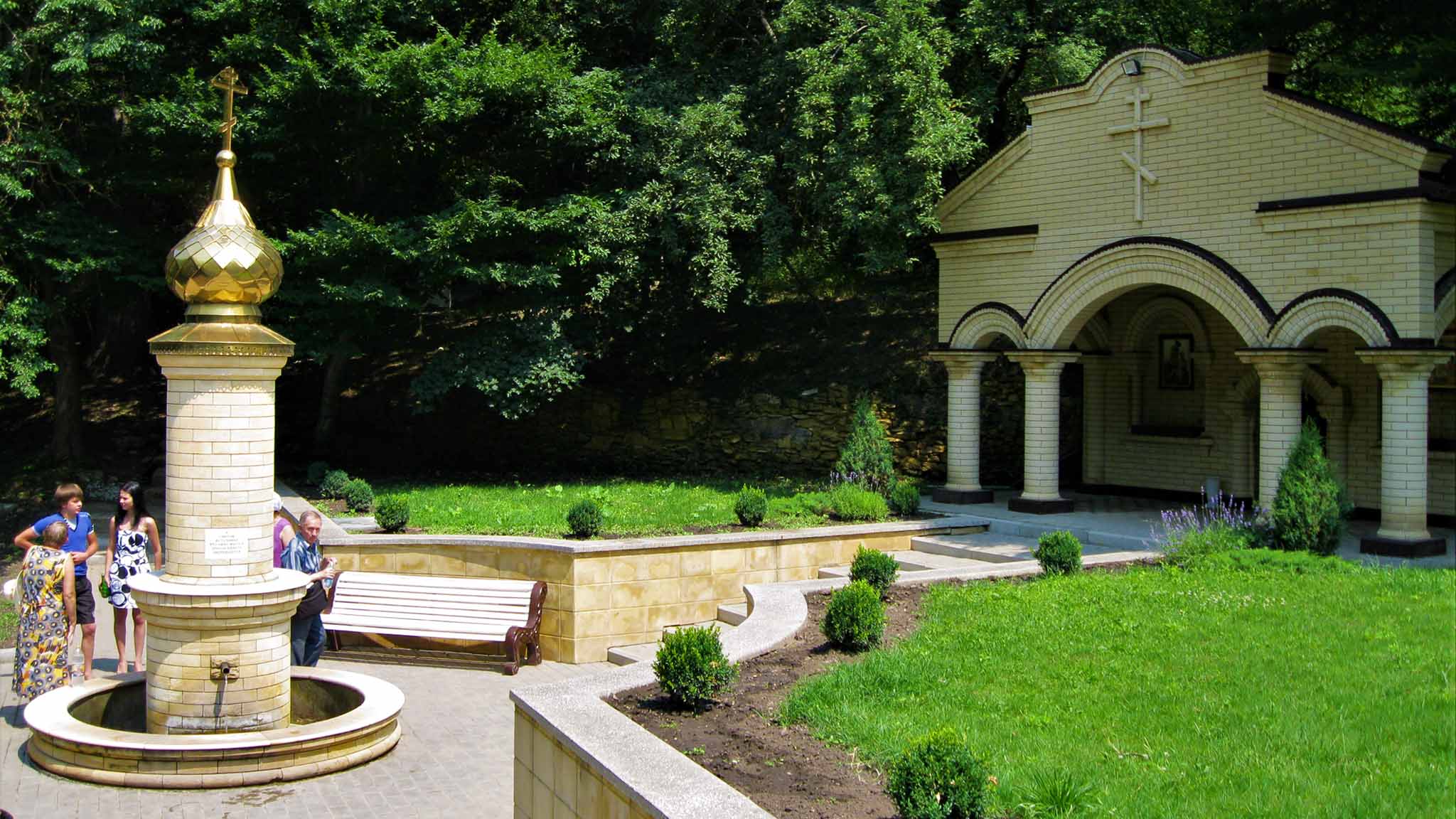 Под обрывом у ступенек расположен каскад бассейнов, через один из которых перекинут подвесной мостик. Рядом установлена небольшая беседка. Здесь круглый год можно встретить любителей закаливания. Купели водой наполняет родник Осетинский-1. Чуть западнее находится источник Осетинский-2, а к северо-востоку родник Осетинский-3 наполняет еще три бассейна. Здесь обычно организуют купель в ночь на Крещение и проводят массовое таинство для желающих принять православную веру в День крещения Руси 28 июля.