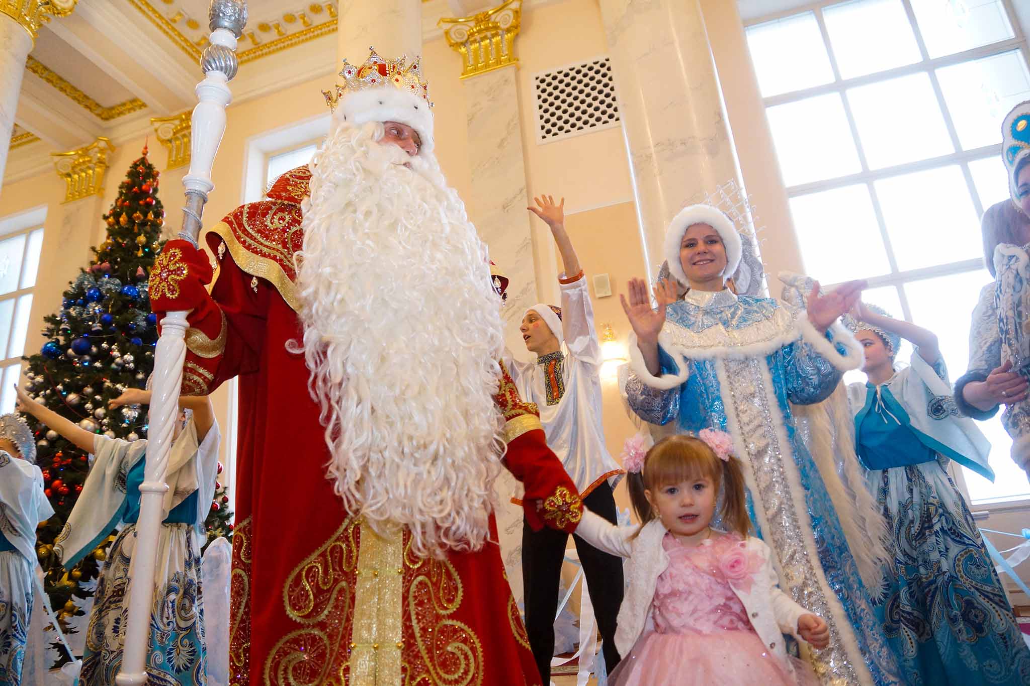 Это интерактивная сказка в народном стиле под названием «Тайна новогодних самоцветов». Юных зрителей ждет гулянье в народных традициях с пятью Дедами Морозами, хороводами, играми и поиском магического талисмана. Герои сказки Хвалёна и Гулёна отправятся в путешествие за самым лучшим праздником, где каждый ребенок станет участником волшебной истории. Яркие костюмы, народные песни и танцы подарят настоящее предновогоднее настроение.
