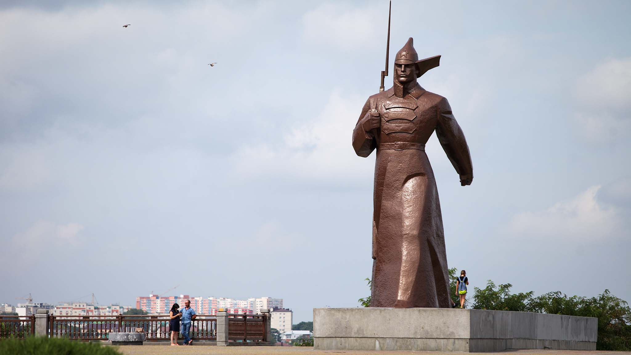 Другую часть Крепостной горы занимает Солдатская площадь — излюбленное место встречи горожан. Здесь с 1976 года гостей встречает семиметровый памятник солдату-красногвардейцу. За буденновцем еще одна смотровая площадка с прекрасным видом на лес и красоты северной части краевой столицы.