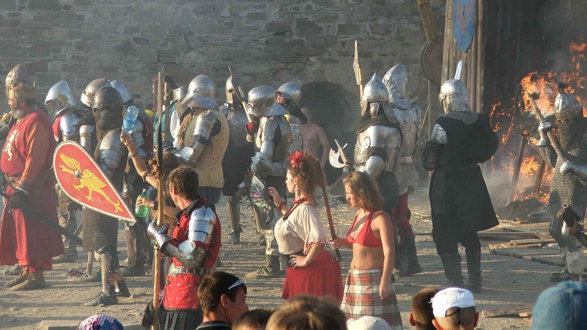 В первый день обязательно проходит парад всех участников, среди которых можно увидеть не только закованных в стальные латы средневековых рыцарей, но и одетых в легкие тартаны шотландских воинов, и золотоордынцев в овчинных шапках, и прекрасных дам в длинных платьях, и даже пиратов, точно сошедших со страниц романов Стивенсона и Сабатини.